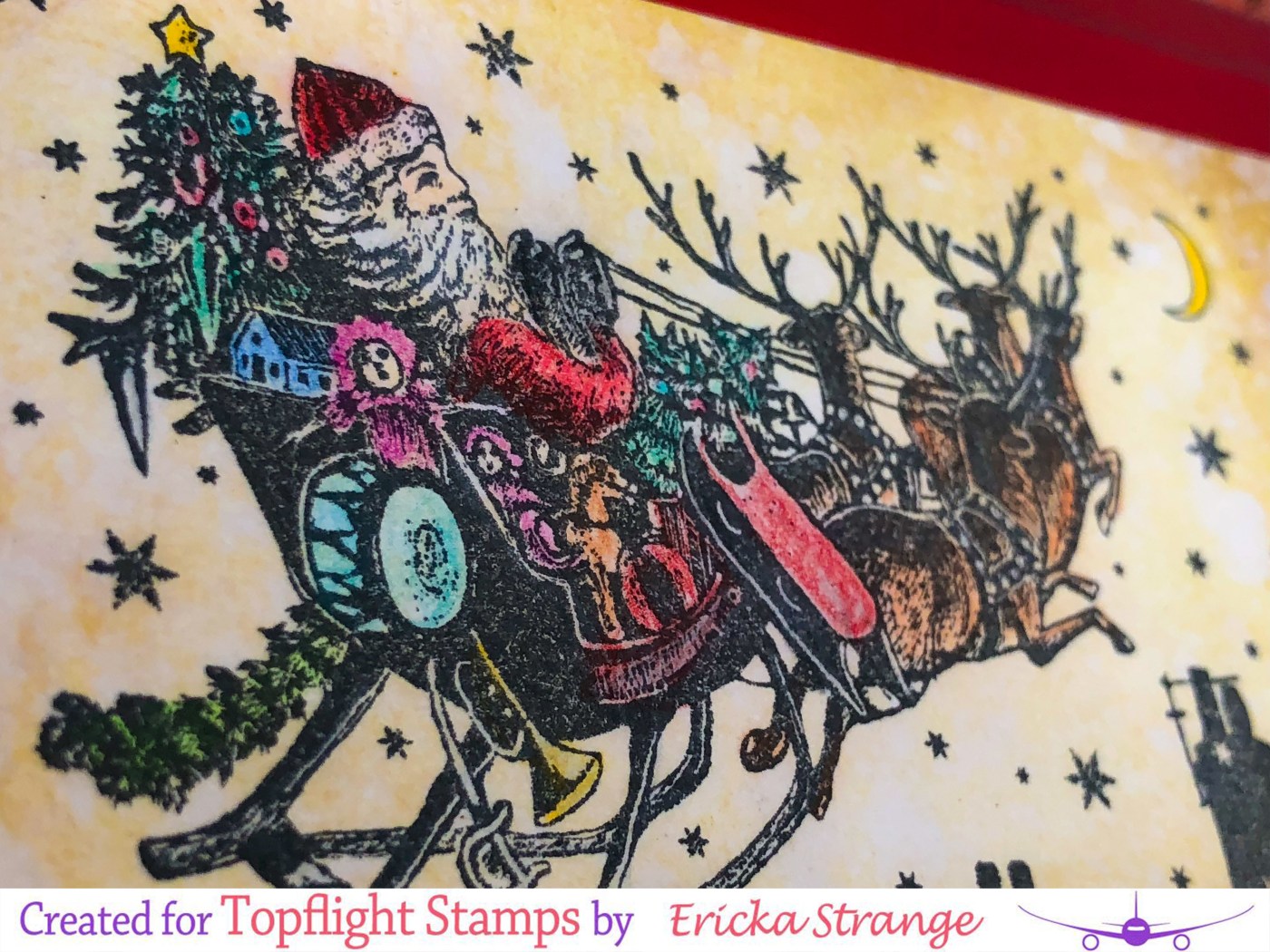 I have another fun post for Topflight Stamps you can see the original blog here. We are celebrating Christmas in July since they are having an awesome Christmas sale (check out the link below). It’s never too early to start making Christmas cards and so I started with this one using the Crafty Individuals Santa Sleigh Ride. I love the vintage look and detail of this stamp.