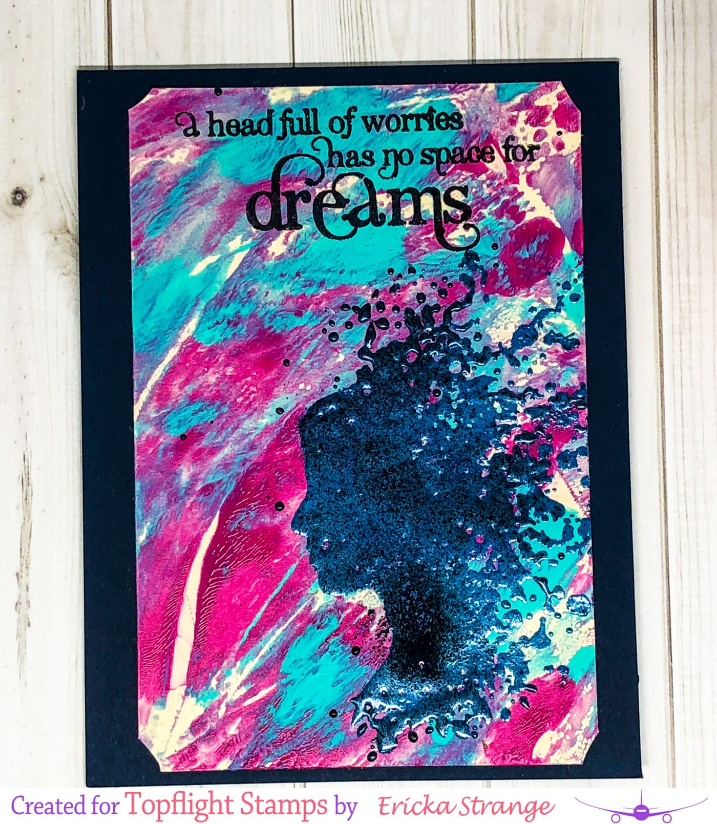 Today I am using the Visible Image set No Space for Dreams. I’ve been playing around with my gel press making fun background and I thought this one would be perfect for this set.