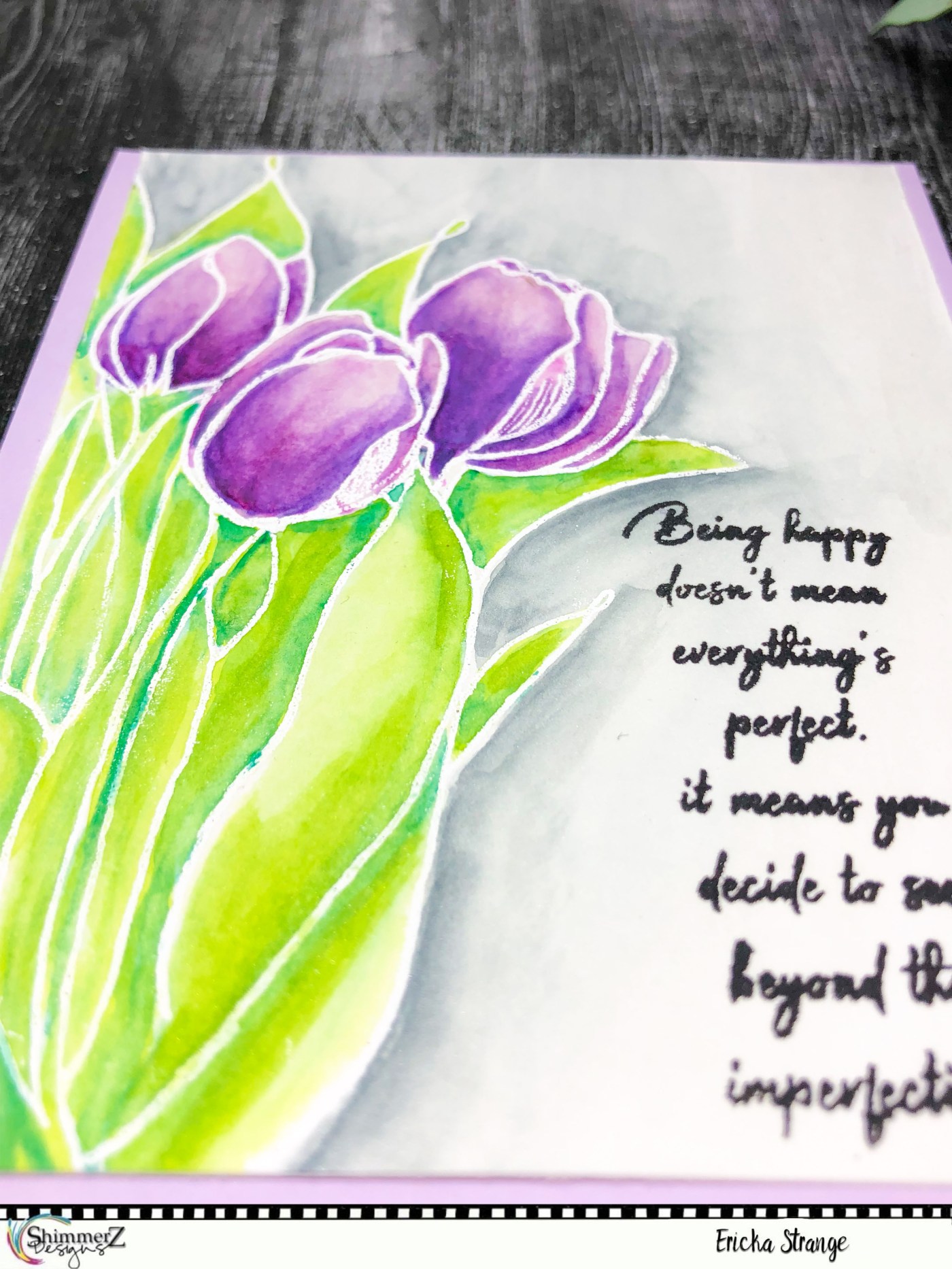 I hope you are having a great day! I’m over on the Shimmerz Paint blog today with this beautiful tulip card. I’m still playing along with the Design Team Color Challenge. The color I choice was Royal Purple and for this card I used the Shimmerz Simply Enjoy stamp set. I love tulips and thought the purple would give them a nice fall look.