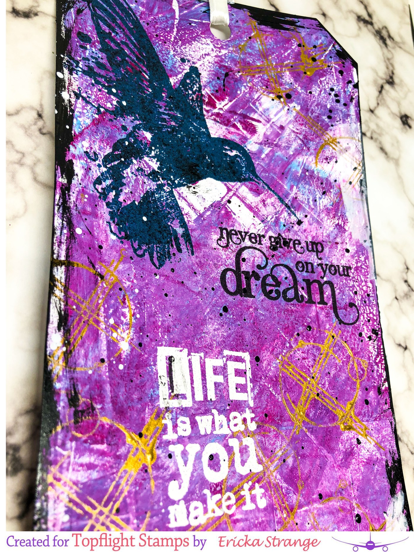 I made a second tag with the same paints to see what they would look like on a black tag. I love the results.