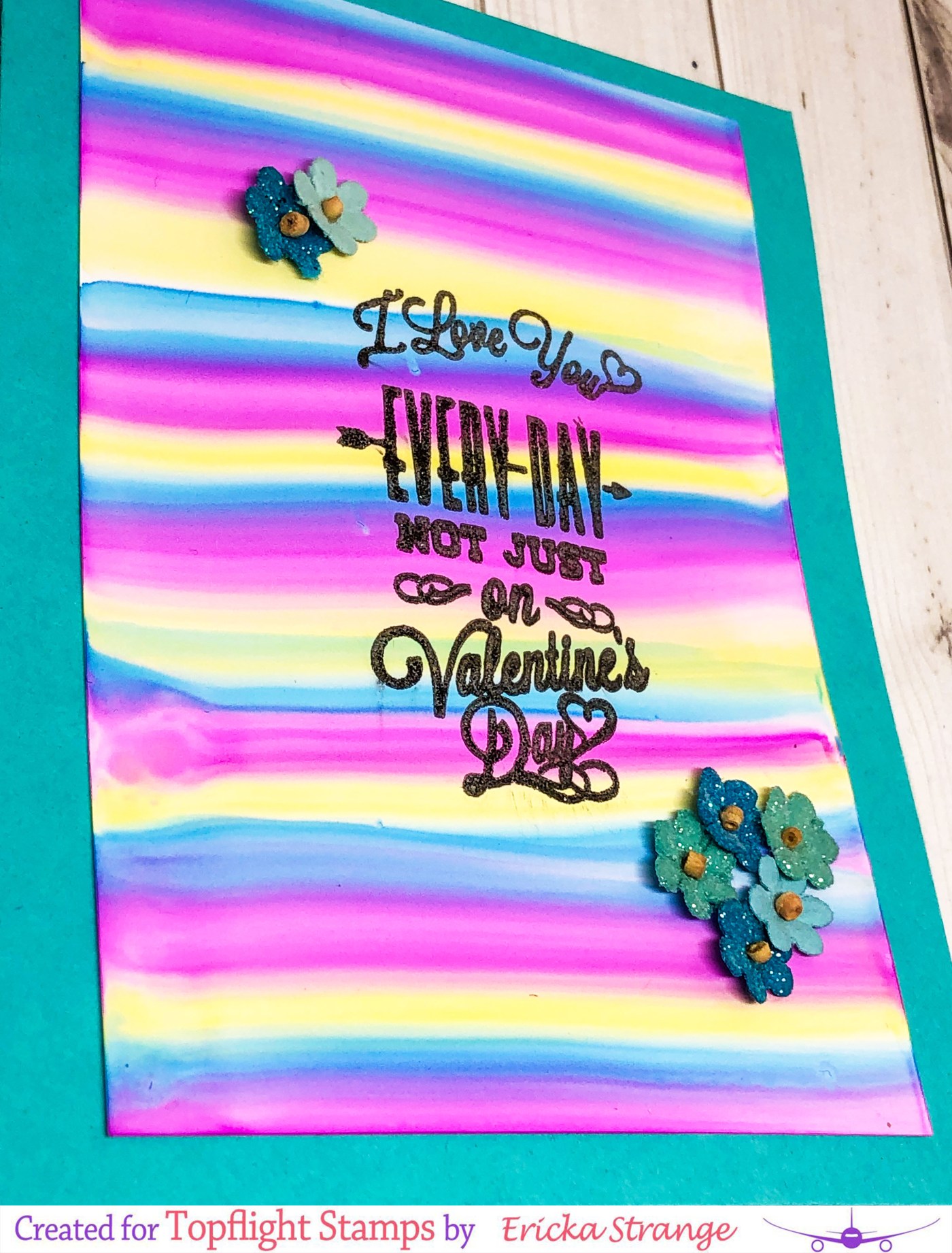 I’m over at Topflight Stamps today with a quick Valentines Day card using some alcohol inks and a pretty sentiment from Craft Emotions. One of my New Year’s Resolutions (not that I’m great keeping them) is to use more of what I have in my stash. So I pulled out my alcohol inks that I haven’t used in awhile and started making fun backgrounds.