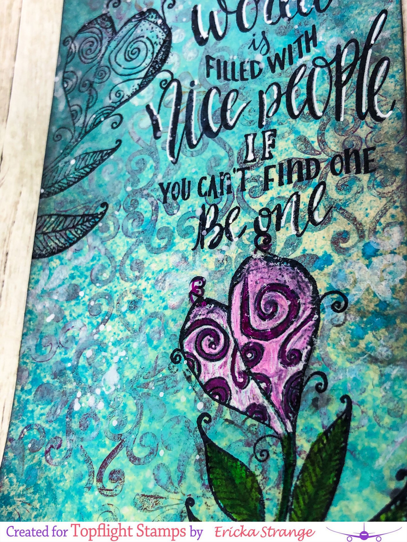 I love the look and textures these plates give to a tag or card. I’ll definitely be playing with them some more. Once the tags were dry, I used some Distress Oxide Sprays to give them some more color. I then stamped the images on the tag and colored them with some sharpies and white gel pen.