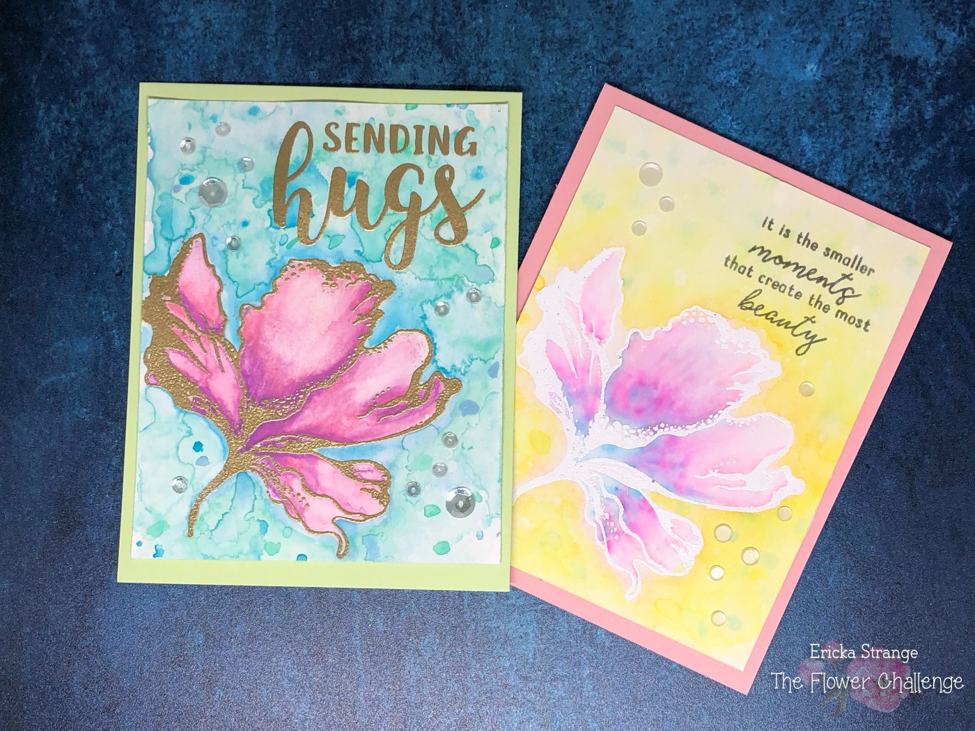 Both cards are gorgeous, Ericka! Love the texture you’ve achieved in the background of the first card. But my favorite is the second card as it has a softer and lovelier look!