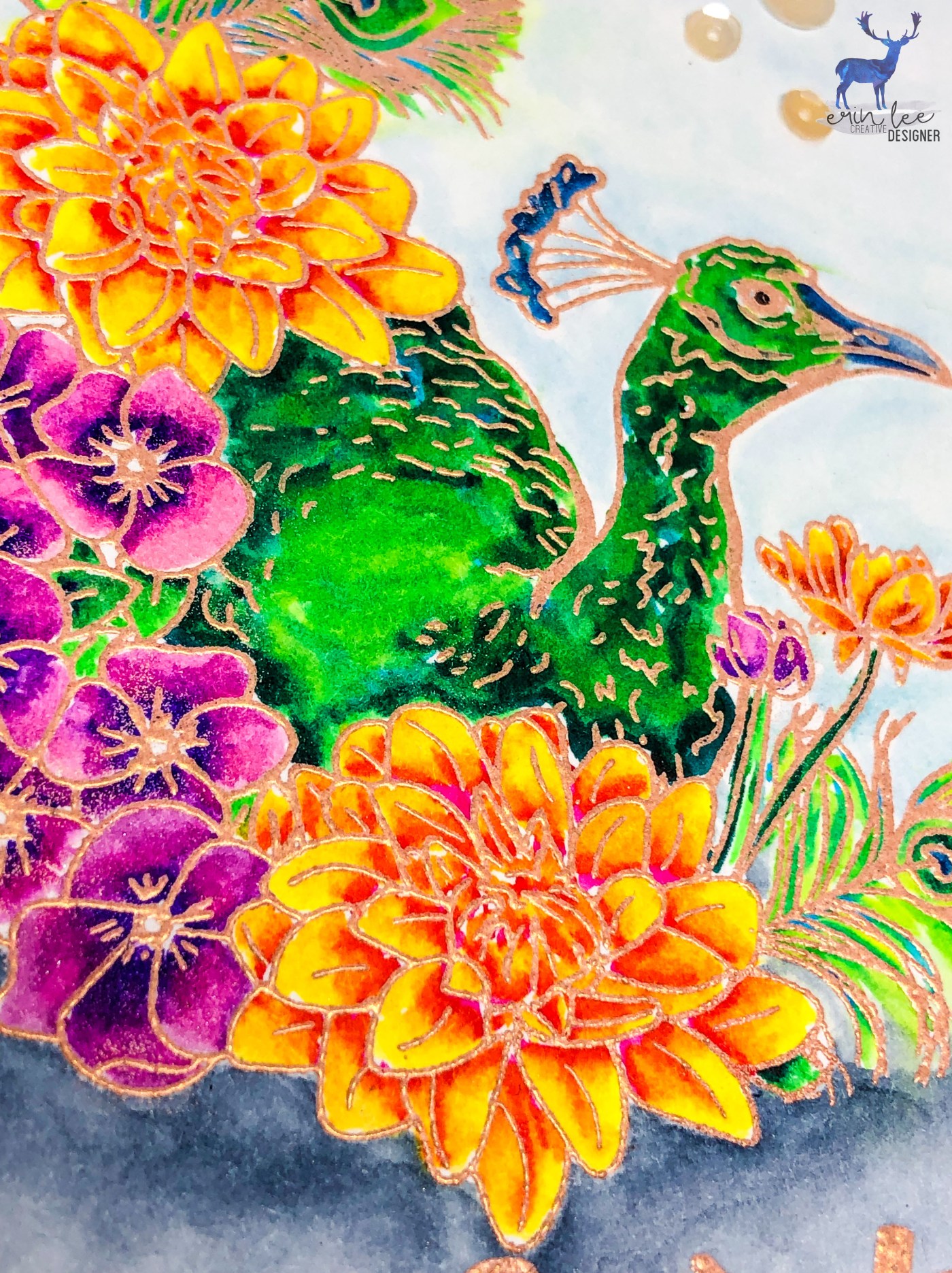 Hello and thanks for stopping by. Today I’m playing with this beautiful Floral Peacock from Erin Lee Creative. I love this beautiful image and it was so fun to color with my Zig Clean Color Real Brush Markers.