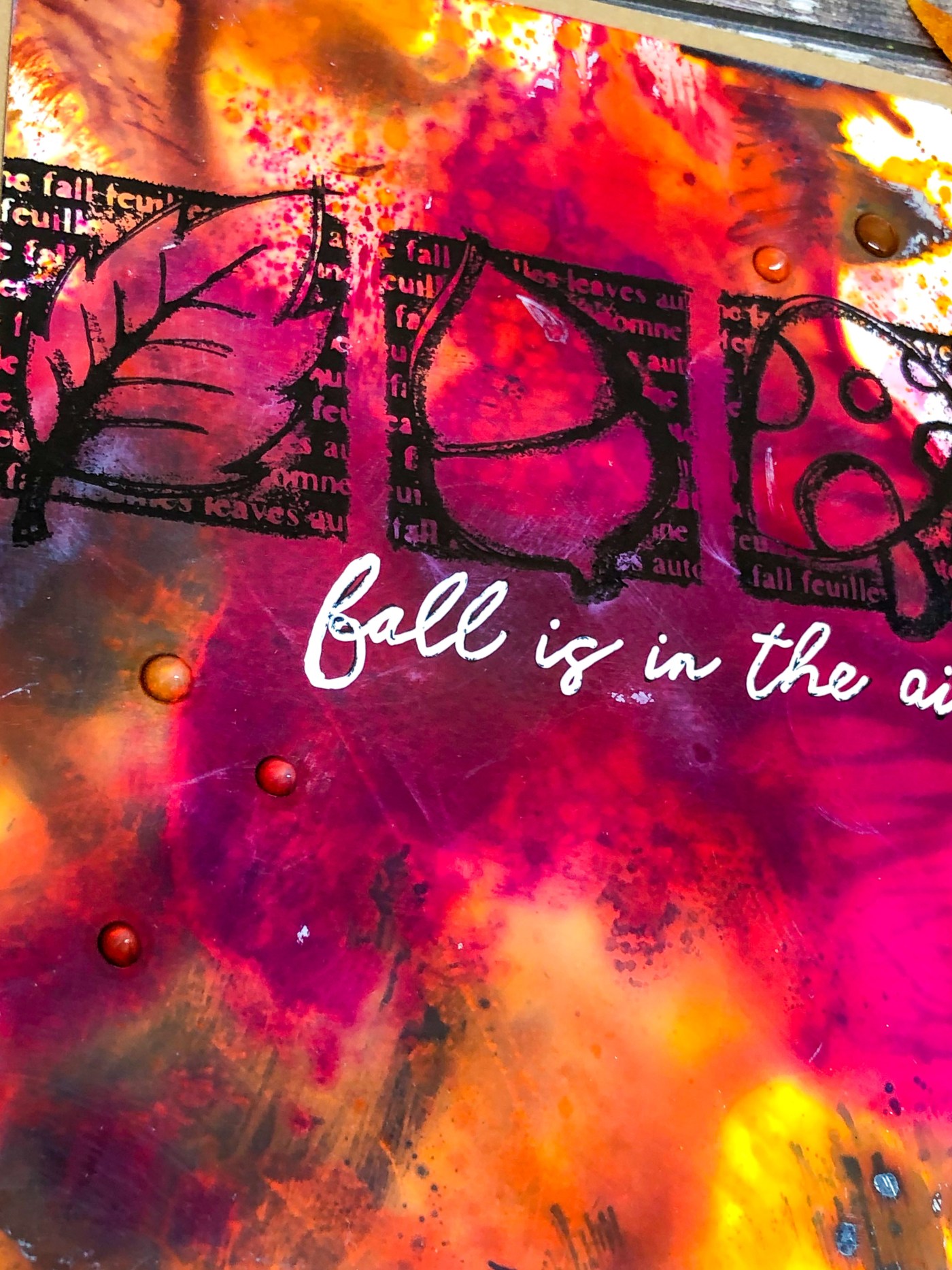 I started by making the background using Distress Oxides in Barn Door, Gathered Twigs, and Marigold, and photo paper. I put some ink on my craft mat and smooshing around the colors letting each layer dry. Once it was inked up and dry, I used a paper towel and wiped of the oxide to revel a bright background.