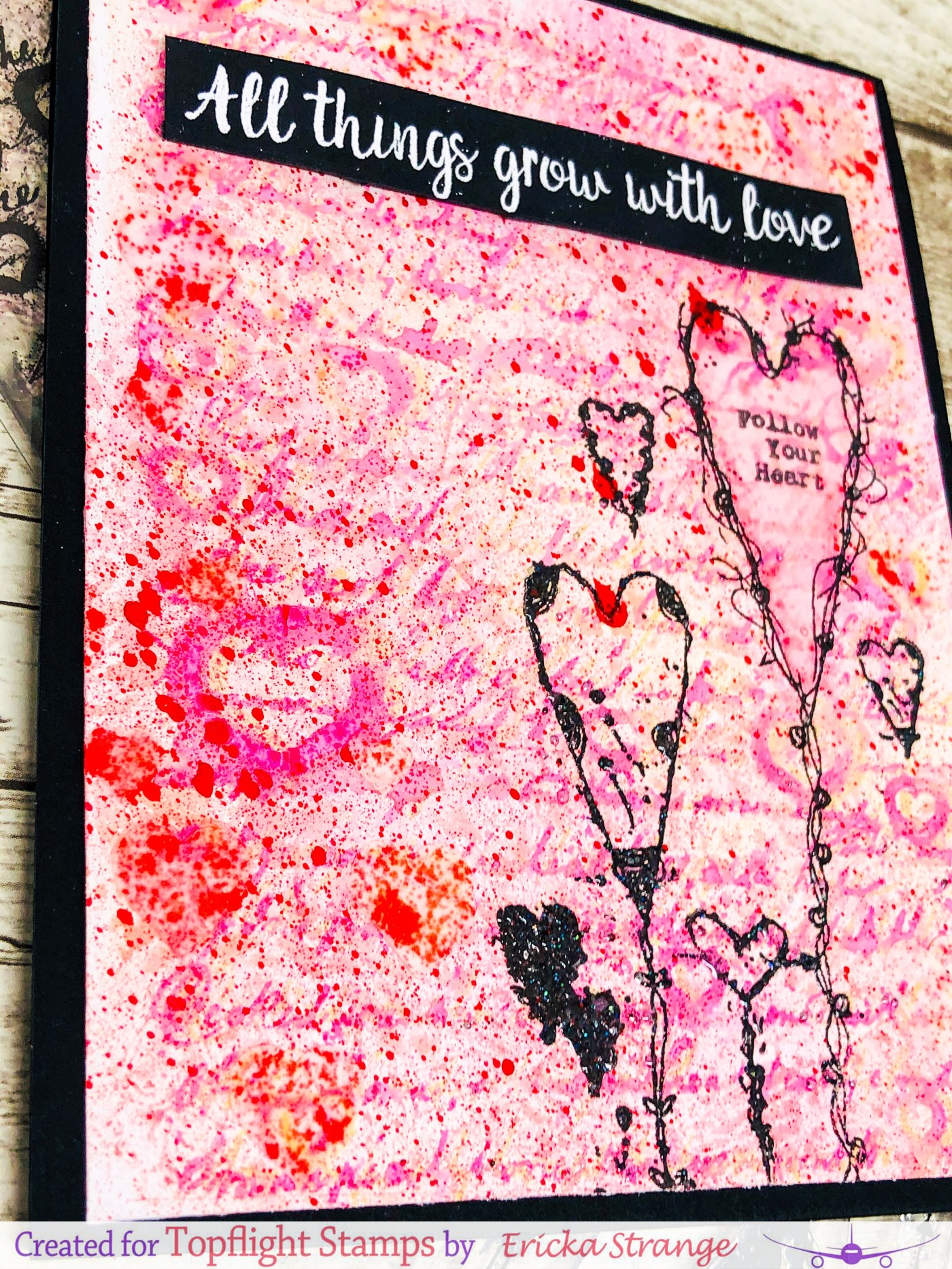 Happy Friday! You made it through the week yeah! I’m over on the Topflight Stamps blogwith a mixed media card I made using the gel press, distress oxides, the Lavina Background Script, and AALL & Create Heart set.