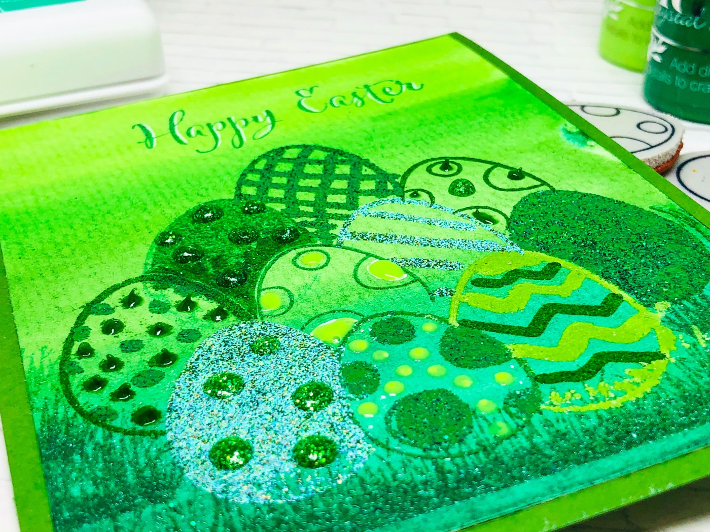 Happy last week of February. I can’t believe how fast this month has gone by. I’m over on the Crackerbox & Suzy Stamp blog today with another Easter card using these Easter Egg stamp and green embossing powders.