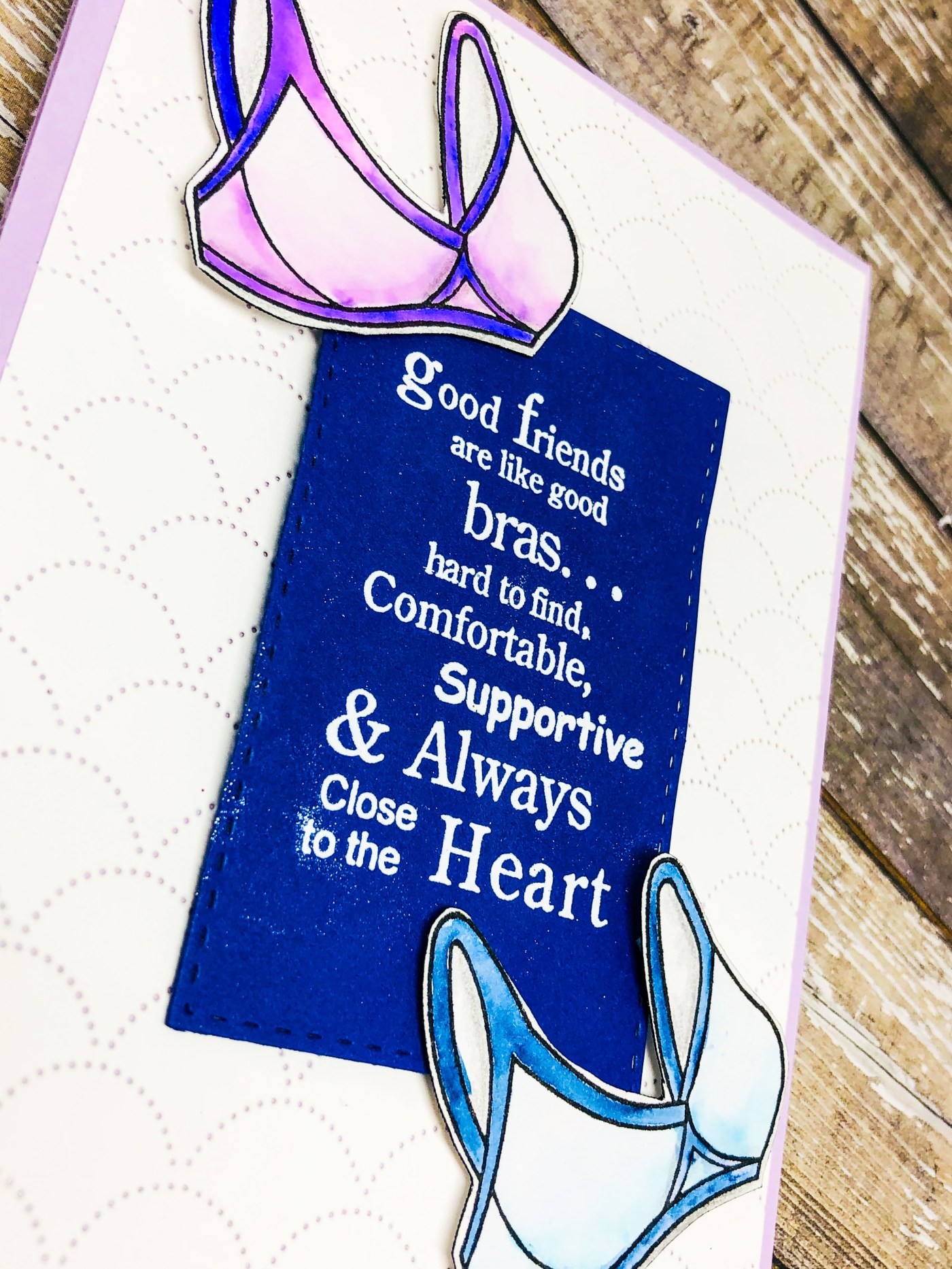 I love this sentiment and it isn’t everyday you get to send a friend some bras! lol