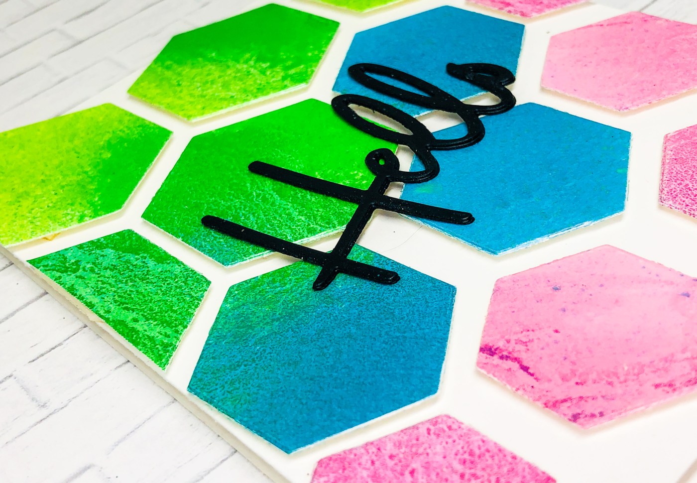 I arranged the hexagon pieces and adhered them to the card base with foam tape for some added dimension.