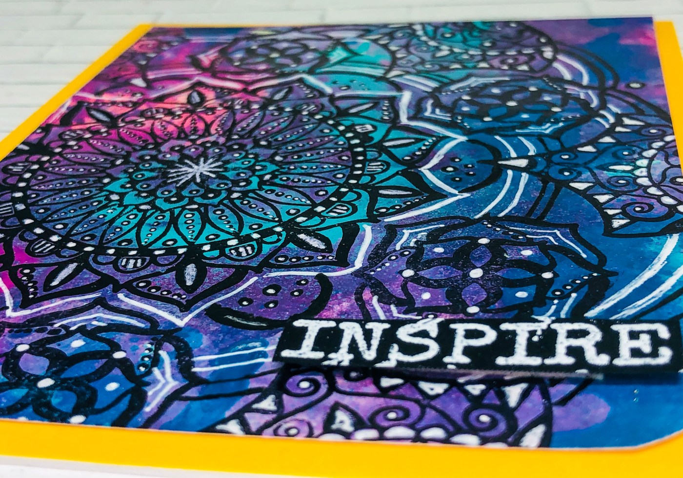 I used a background I had previously made with Dina Wakley Media Spray and added so white gel pen doodling along with some extra black pen embellishments.