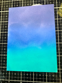 Have you had a chance to play with the WOW! Changers? If not you really should as it adds a variety of different looks to your embossing powder stash, which, in my book, is always a good thing. For my card, I started by blending Distress Oxides ink in Mermaid Lagoon, Blueprint Sketch, and Chipped Sapphire.