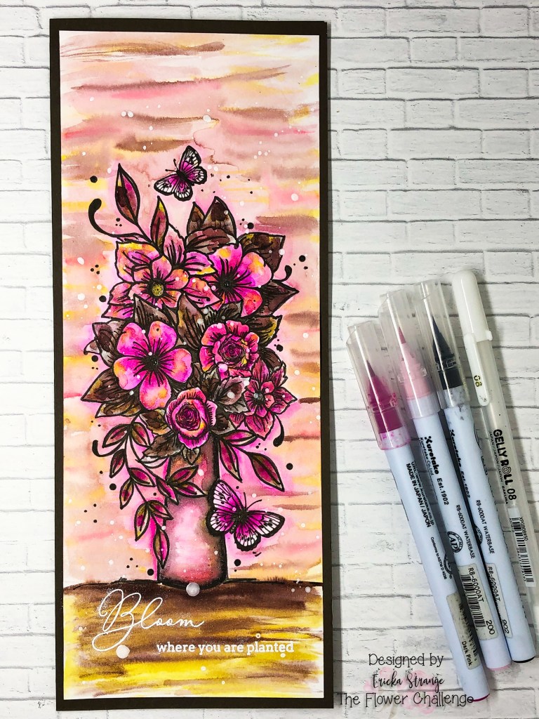 For this card, I used the Flower Butterfly Vase image and colored it up with a variety of Zig Real Brush Markers. Â