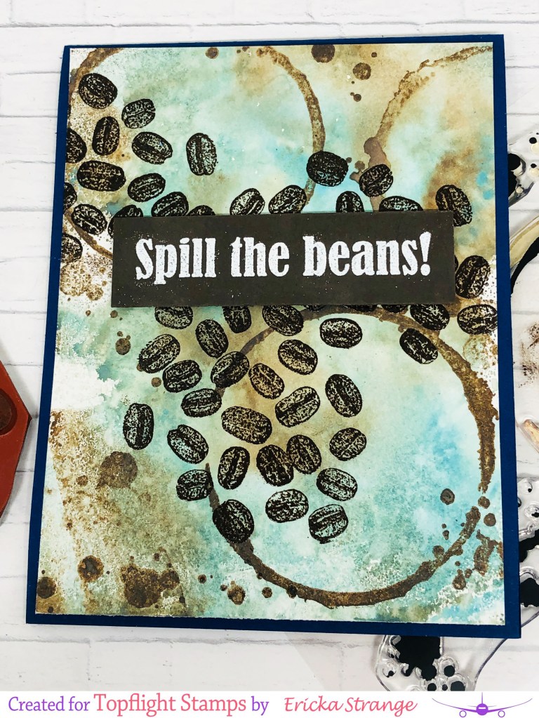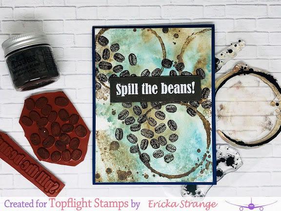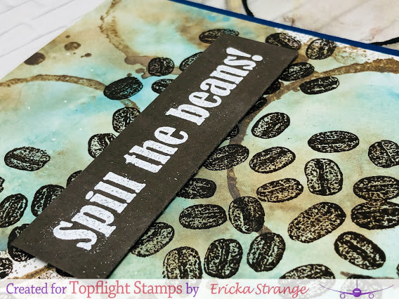 I added the beans from the from the Darkroom Door Coffee Time and stamped them in the same Distress Ink and used Distress Glaze in Walnut Stain to help the beans stand out.