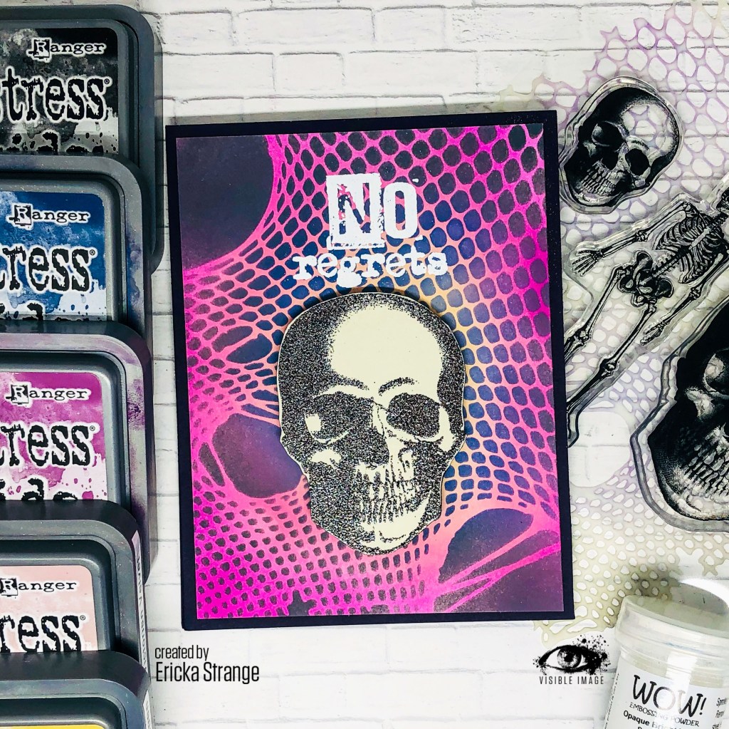 Happy October! I hope you are all doing well. Today I’m getting ready for Halloween with a fun card using the Visible Image Mr. Bone Jangles set paired with the Ripped Fishnet.