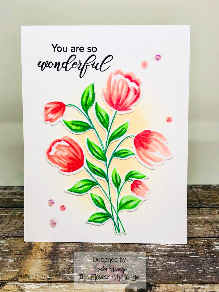 The inking in the background really makes your lovely flowers pop, Ericka.