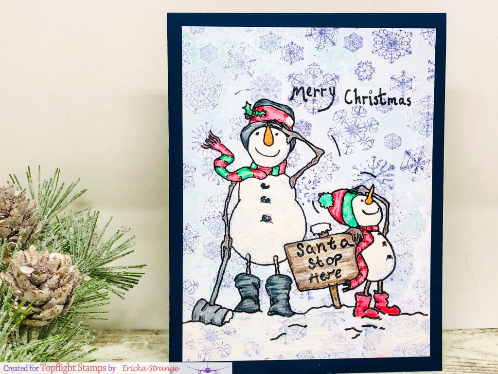 Happy Friday! I’m over on the Topflight Stamps Blog with a fun snowy winter card using The Card Hut – Santa Stops Here.