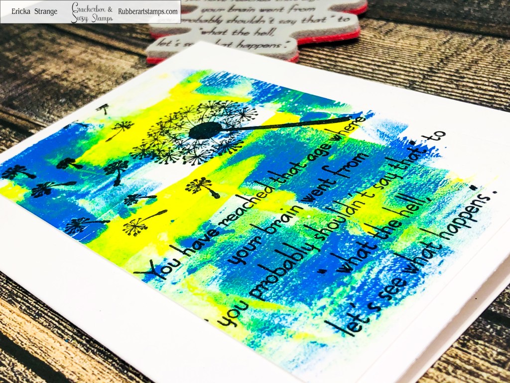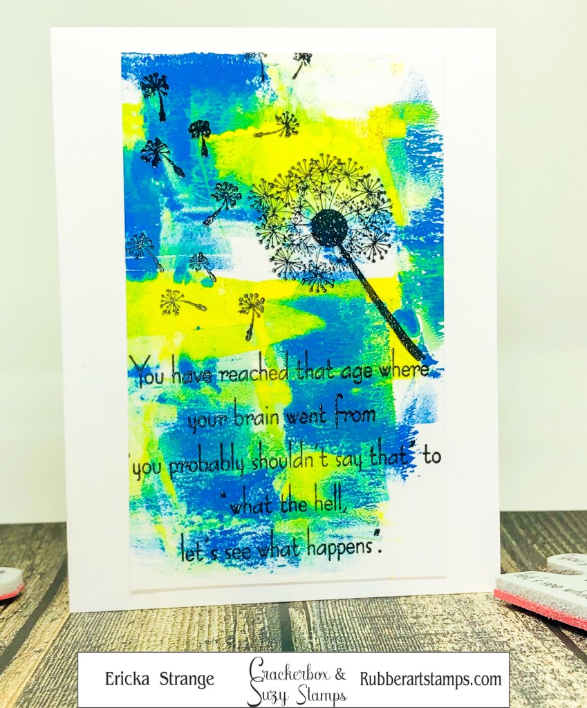 Happy New Year! I’m over the Crackerbox & Suzy Stamp blog with a bright card I made using Dandelion Fluff and the Birthday 7 sentiment which is a little snarky and might be true for me lol.