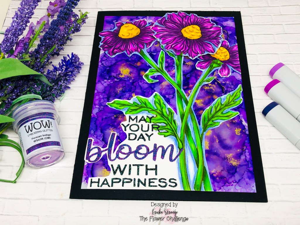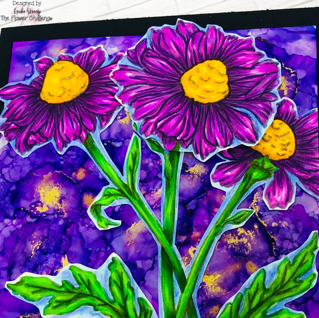 Love the bold shades of purple for your beautifully coloured flowers and amazing alcohol ink background. This is a stunning card Erika! xx