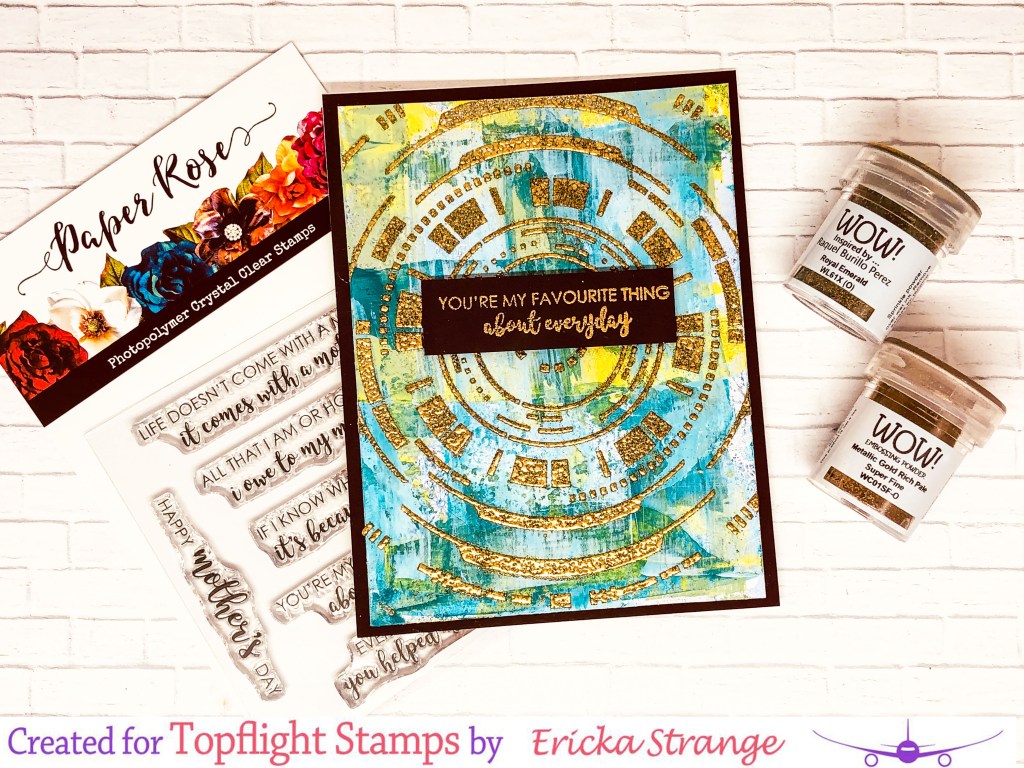 Happy Friday! Today I’m over on the Topflight Stamps blog playing with the Paper Rose Hud 6 x 6 Stencil on a Fresco Acrylic background with some WOW! Embossing.