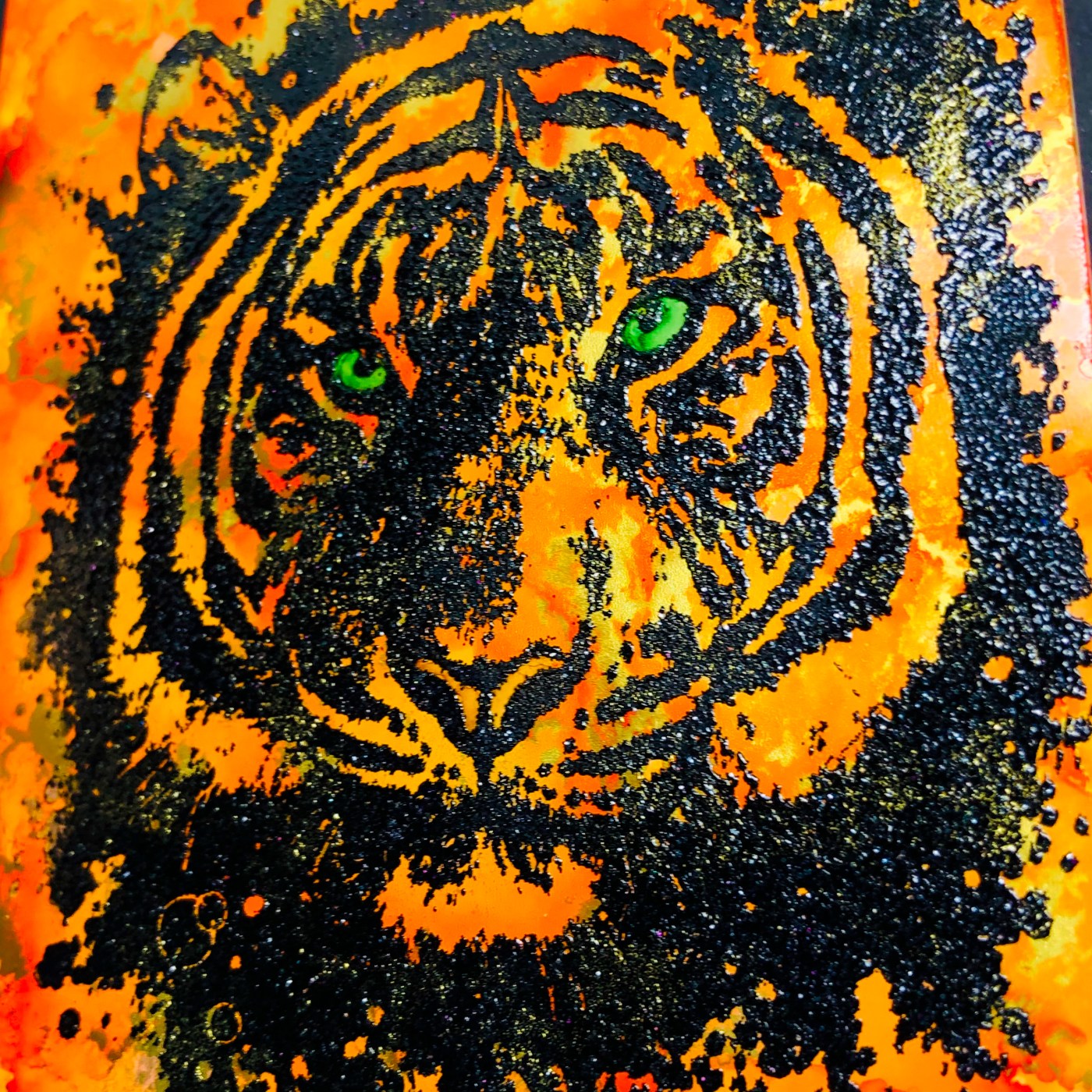 I took the Alcohol Blending Pen and add some Clover alcohol ink to the Tiger’s eyes.