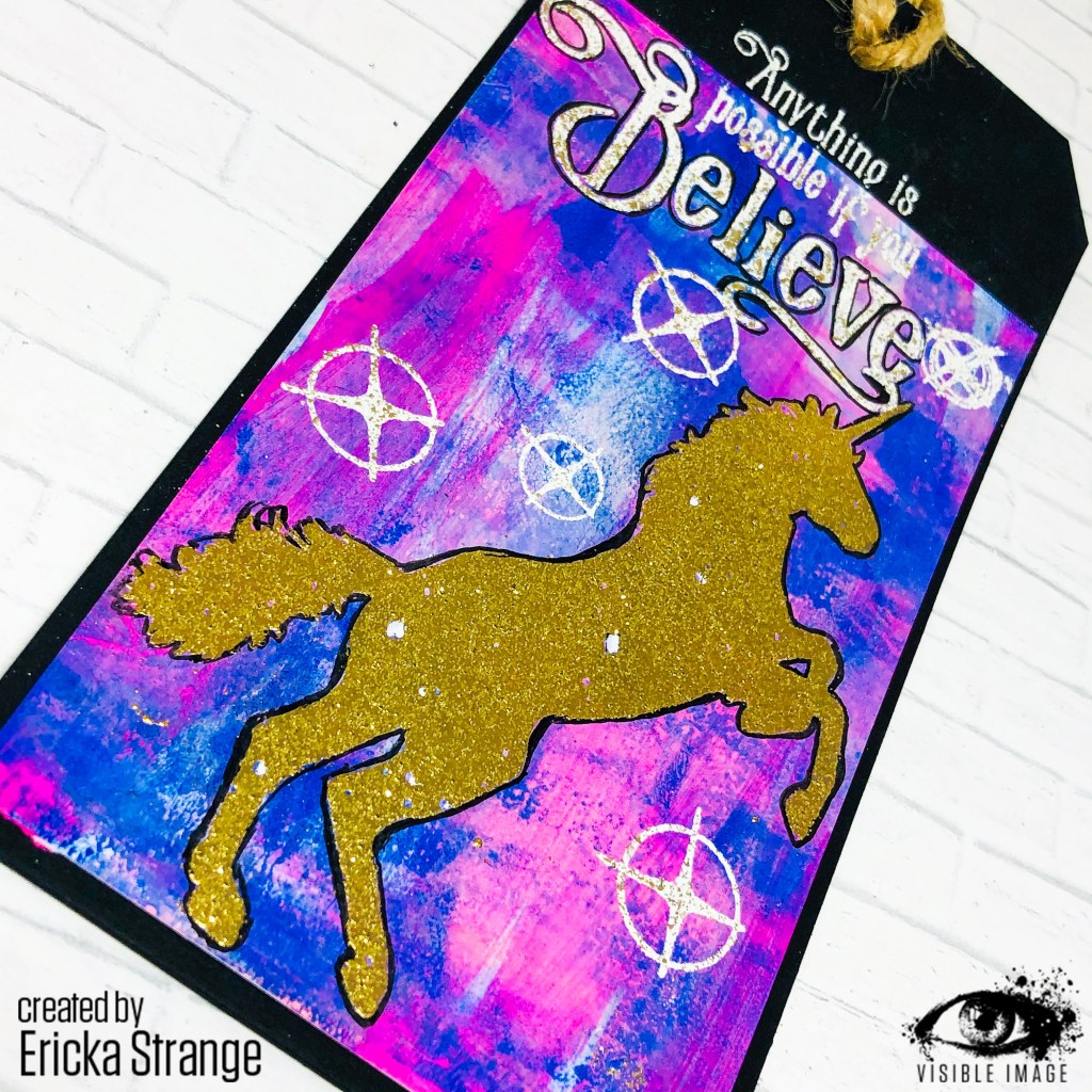 I hope you are all doing well. Today I have a fun bookmark/tag I made for my daughter. She’s a first grader and we’ve been working on reading chapter books and asked me to make a bookmark for her. Of course the perfect stamp set for a girl’s bookmark is the Visible Image Believe In Unicorns set.