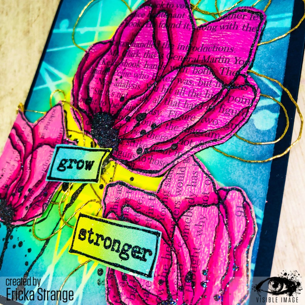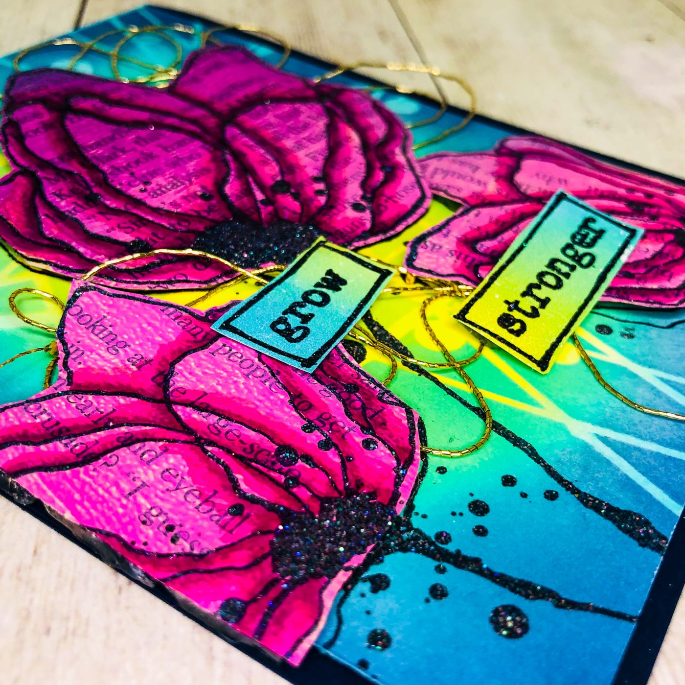 I then stamped the flower images from both the Creative Chaos and Total Chaos sets and heat embossed them with WOW! Halo. I then added some additional colors with my pink Sharpies.