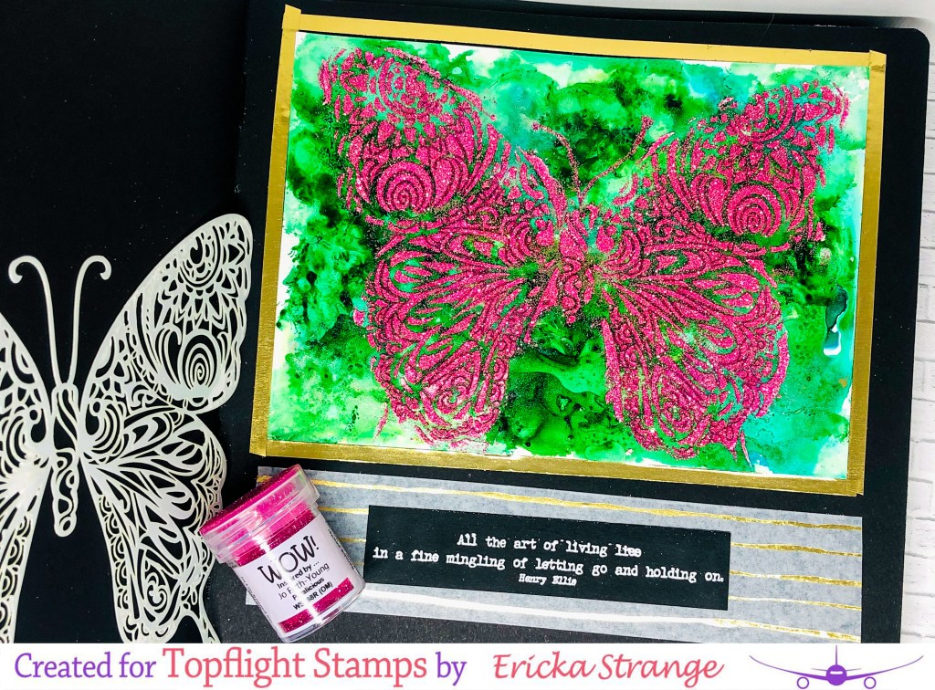 Hello everyone! I’m over on the Topflight Stamps blog with a journal page I made using AALL & Create Flutterby Stencil with and alcohol ink background and WOW! Embossing.