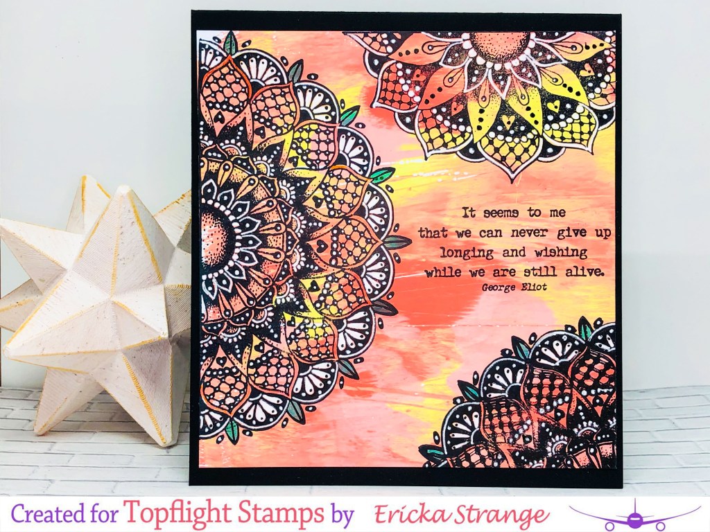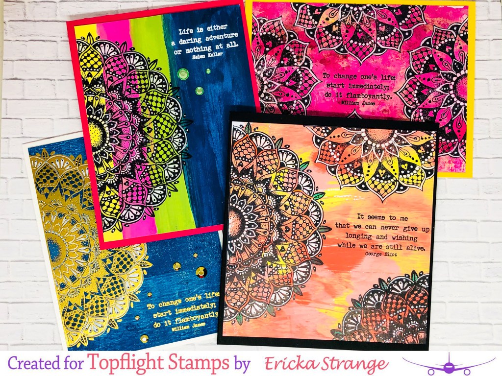 Hello friends! I’m over on the Topflight Stamps blog with a fun post using the PaperArtsy Tracy Scott 51 mandala set. There is something about a mandala, I can’t get enough and spent all day playing with them and using my white gel pen.