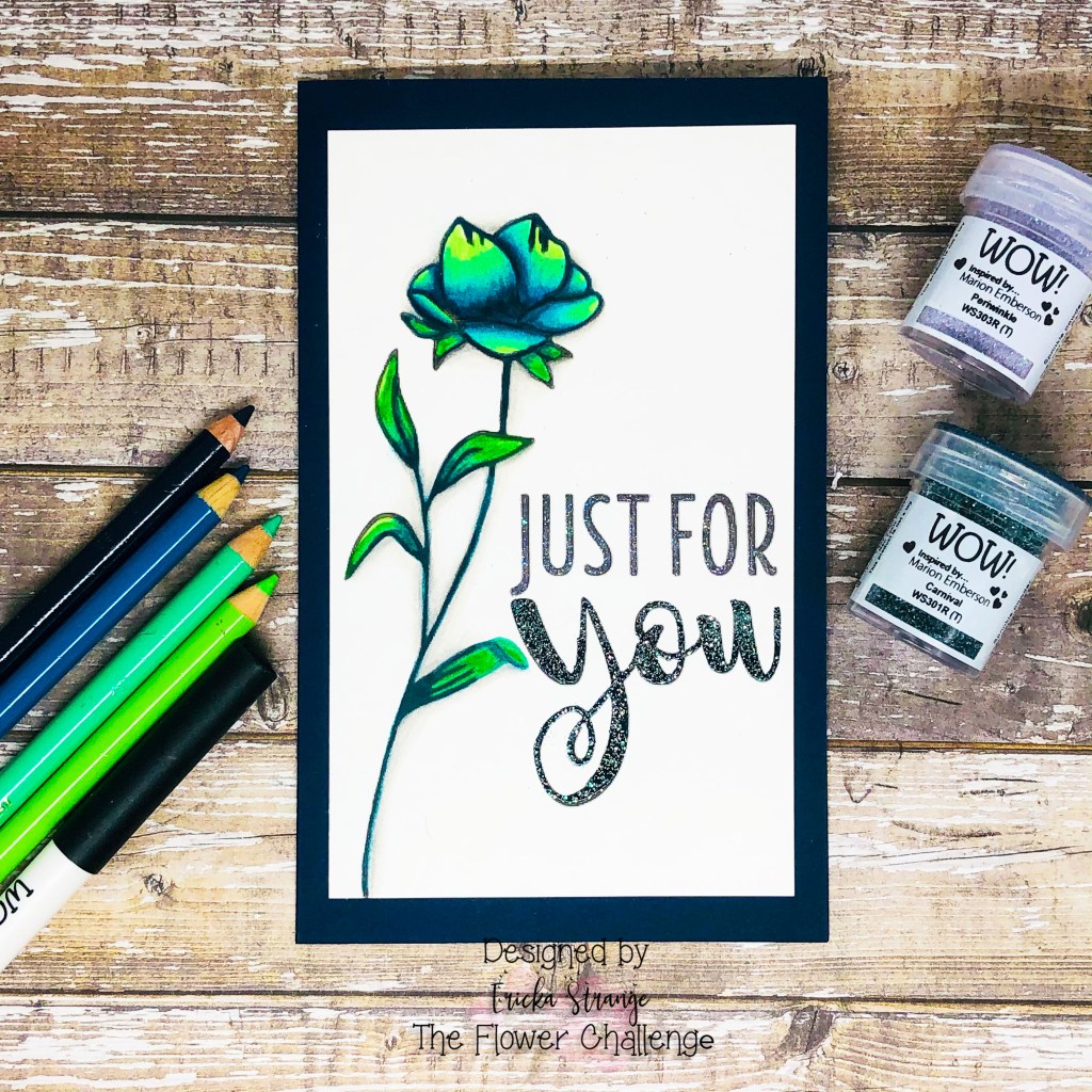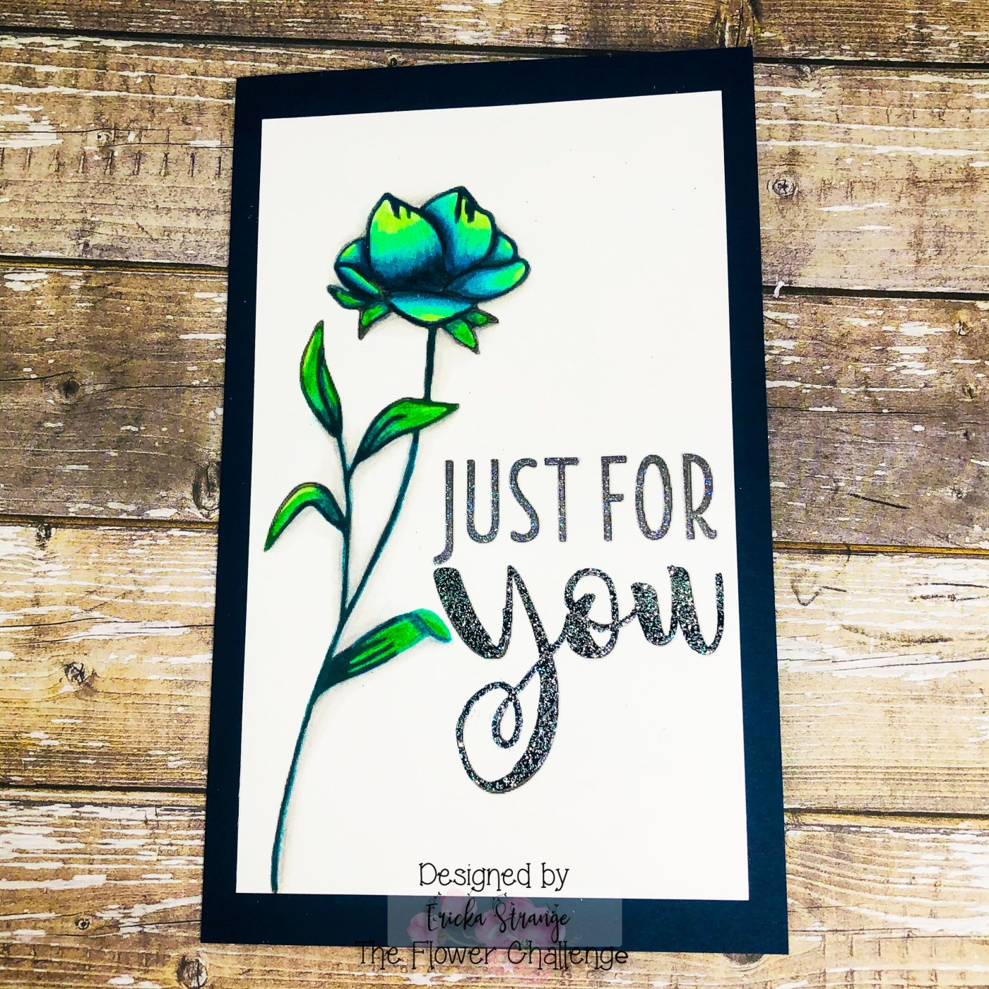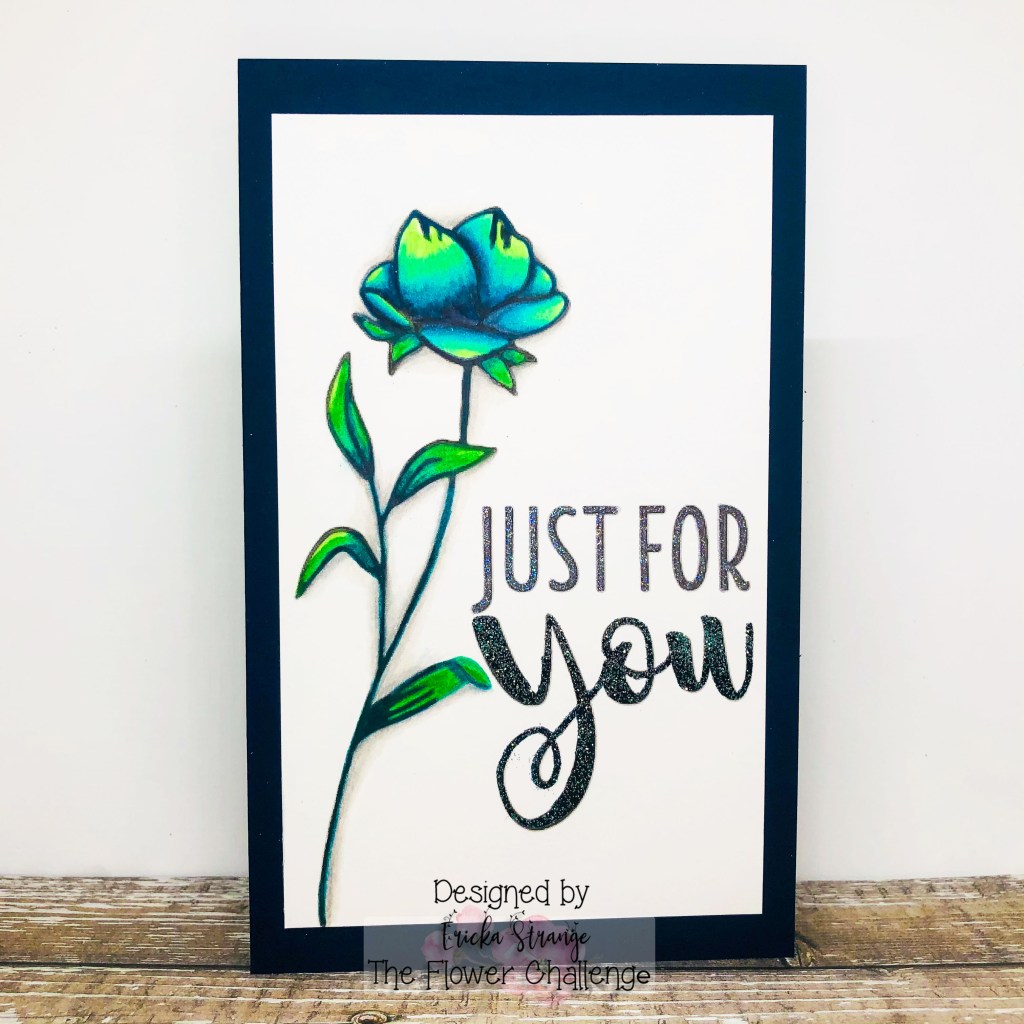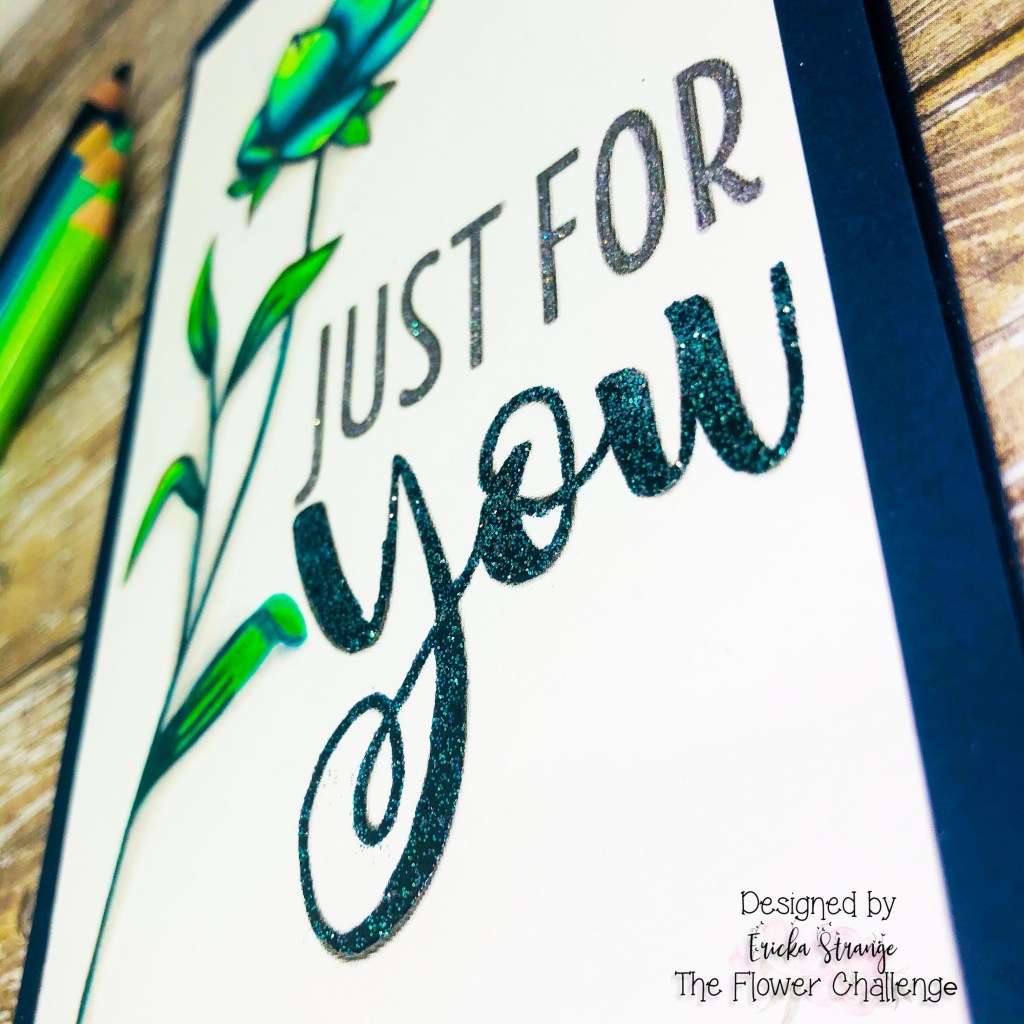 Ohh my goodness Ericka this flower looks stunning with those colours, I have got to try this colour mix big time. Stunning creation and the glitter on the sentiment wow.