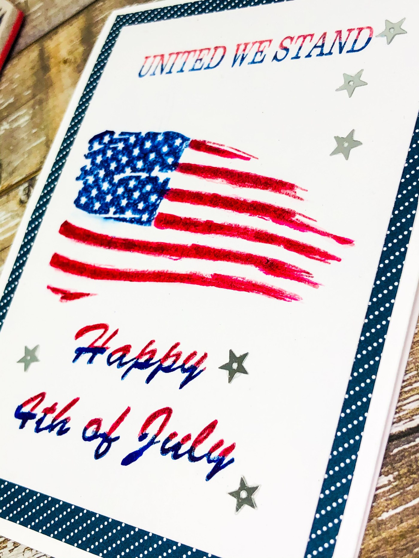 I repeated the same step with the United We Stand and Happy 4th of July sentiments. I love the two tone look of this technique.