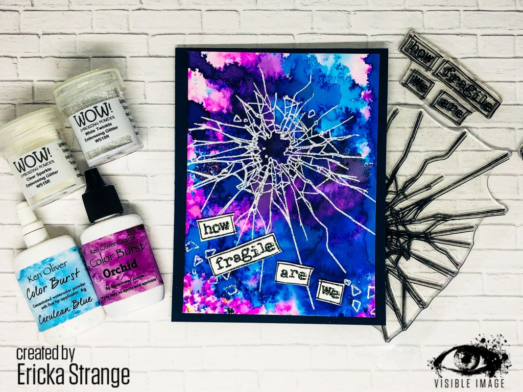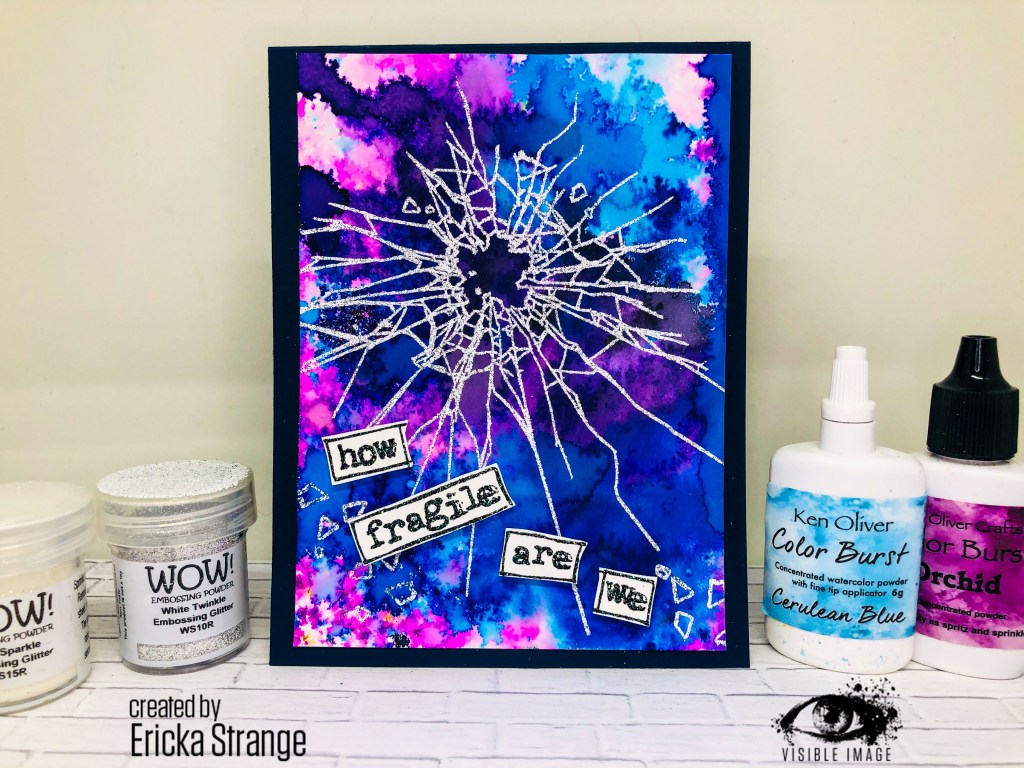 Hello Friends and happy Monday! Today I’m playing with the Visible Image How Fragile set and some pigment powders.