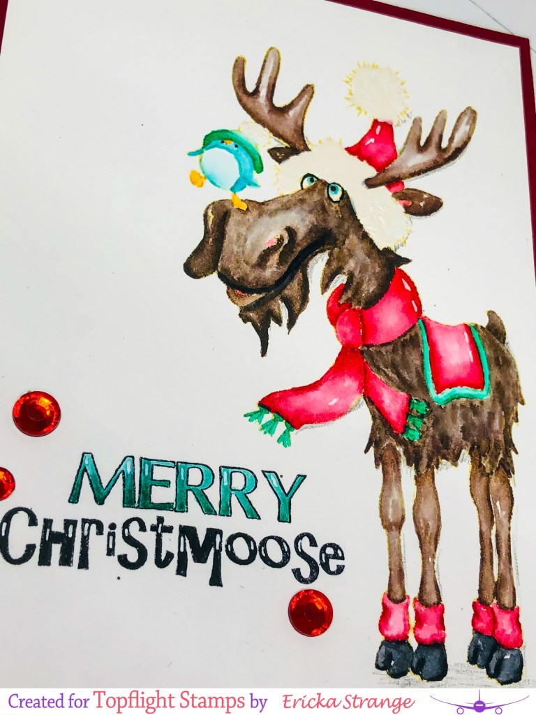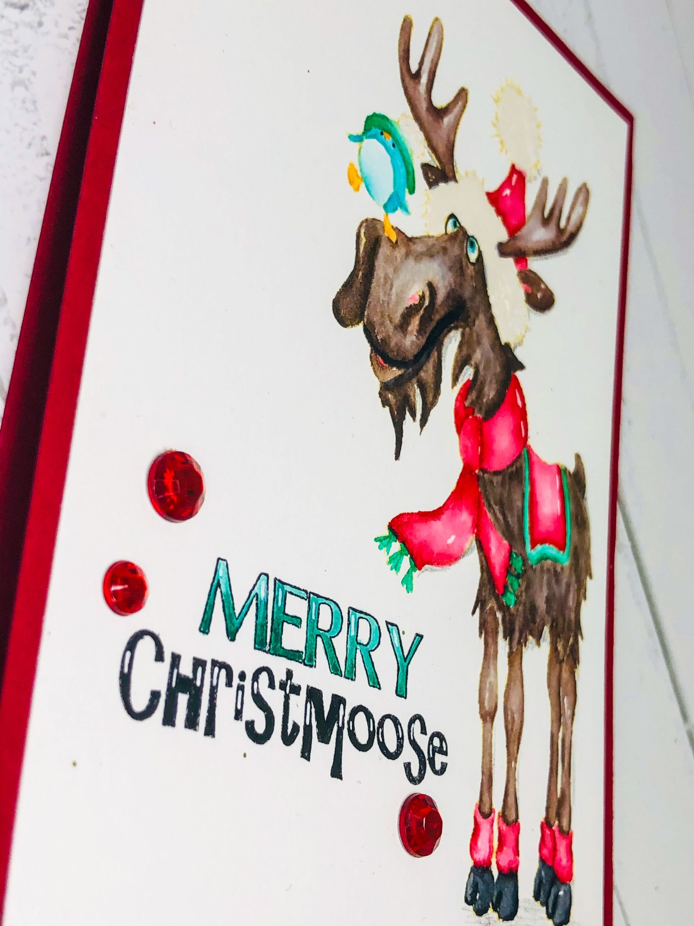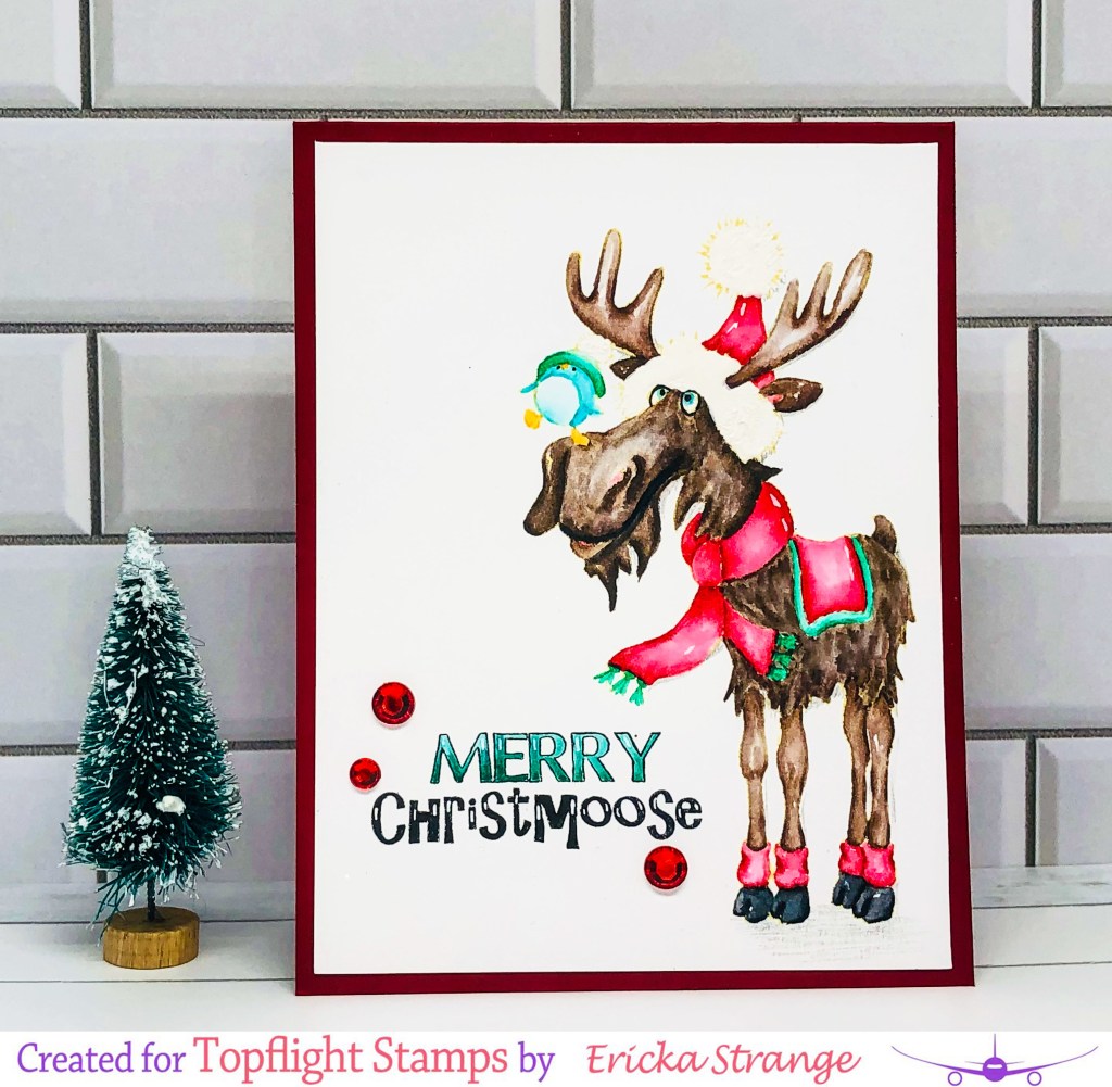 Hello crafty friends! I’m over on the Topflight Stamps blog playing along with the Christmas in July with this fun Hobby Art It Moose Be Christmas set. This moose is so adorable and I love all of images included in the set.