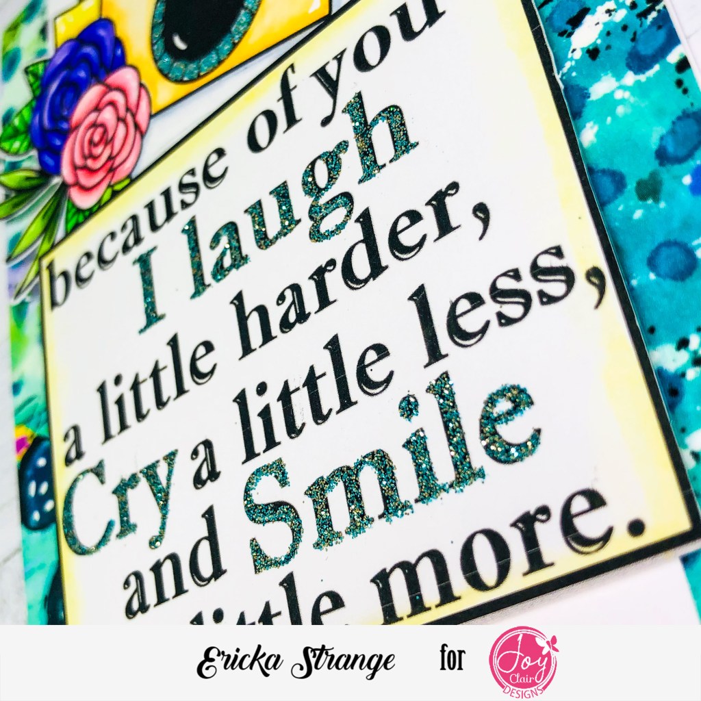 I used my WOW! Embossing pen on a portion of the sentiment to add the Aquamarine embossing to the bold lettering. I love the sparkle this embossing powder adds to my card, so also added additional shine around the camera.