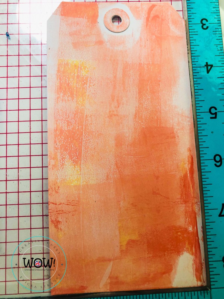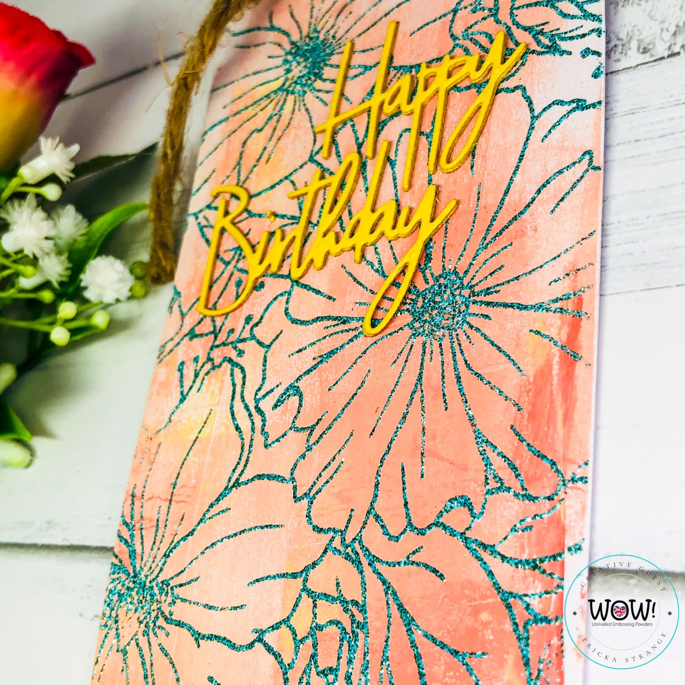 Hello crafty friends! I’m over on the WOW! Embossing blog with my last post as a Creative Guest . Today I have a birthday tag using a gel press background with the Pinkfresh Floral Focus stamp and the WOW! Seth Apter Sea of Tranquility Embossing Powder.