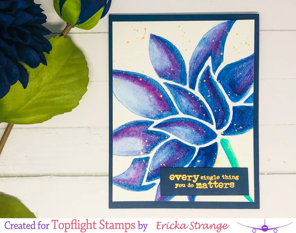 I was cleaning out my stash and forgot about these fun pencils and decided to trace the flower stencil on watercolor paper.