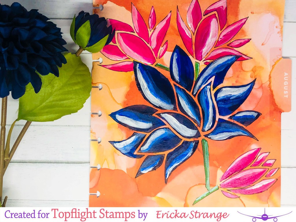For my next project, I had saved some planner tabs (the backgrounds are so pretty) and decided to create a swatch book with them. I used a black pen to trace the stencil and then painted the images up with some acrylics in my stash.