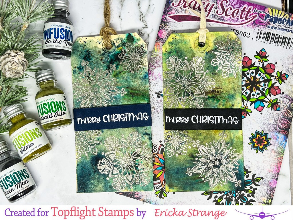 Happy Black Friday! I hope you had a wonderful Thanksgiving filled with lots of good memories. Today I’m playing with PaperArtsy Infusions and the Tracy Scott 63 set to create some Christmas tags.