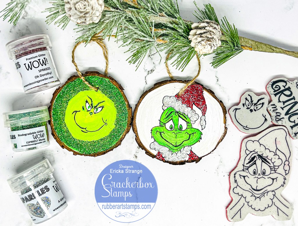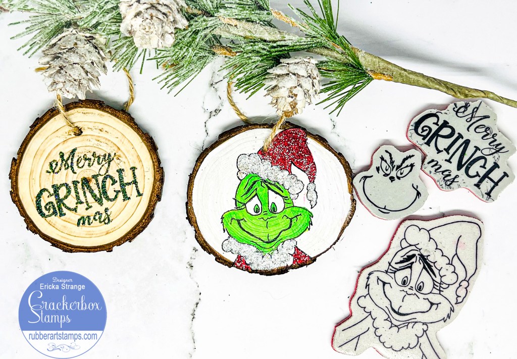 I hope you all had a wonderful Thanksgiving and a great Black Friday! Today I am sharing a couple of Christmas ornaments I made using the some Crackerbox Grinch stamps.