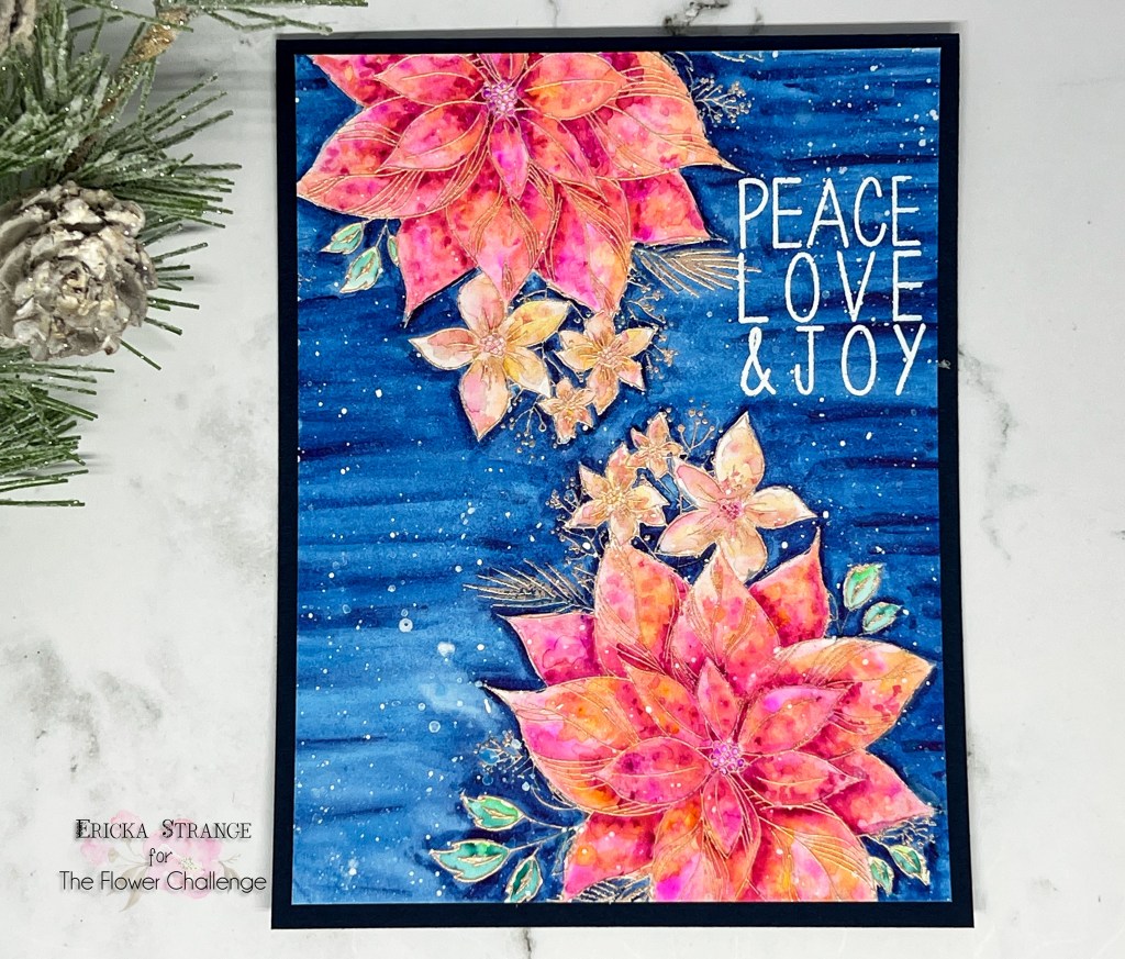 Love the artistic feel of your card given by the dots in the poinsettias and the brush strokes of the background! A gorgeous creation as always, Ericka! Merry Christmas 🎄!