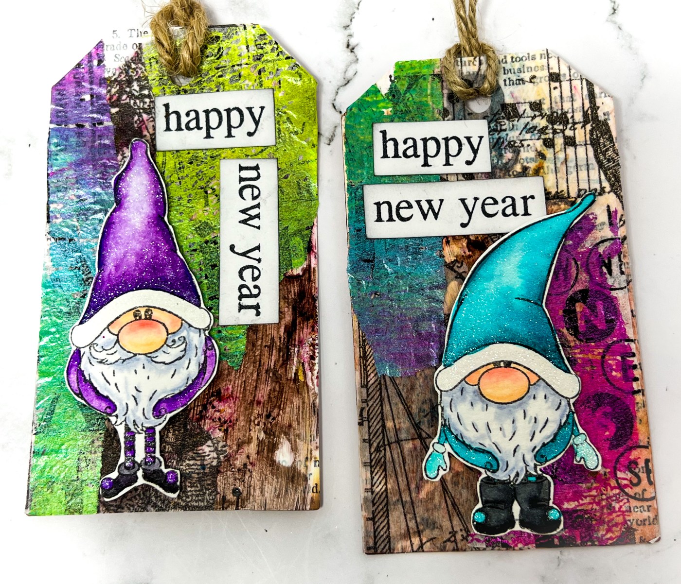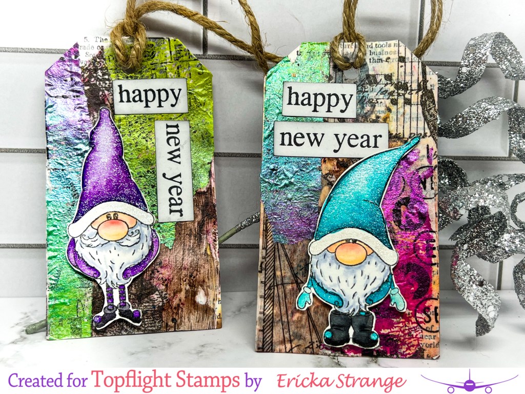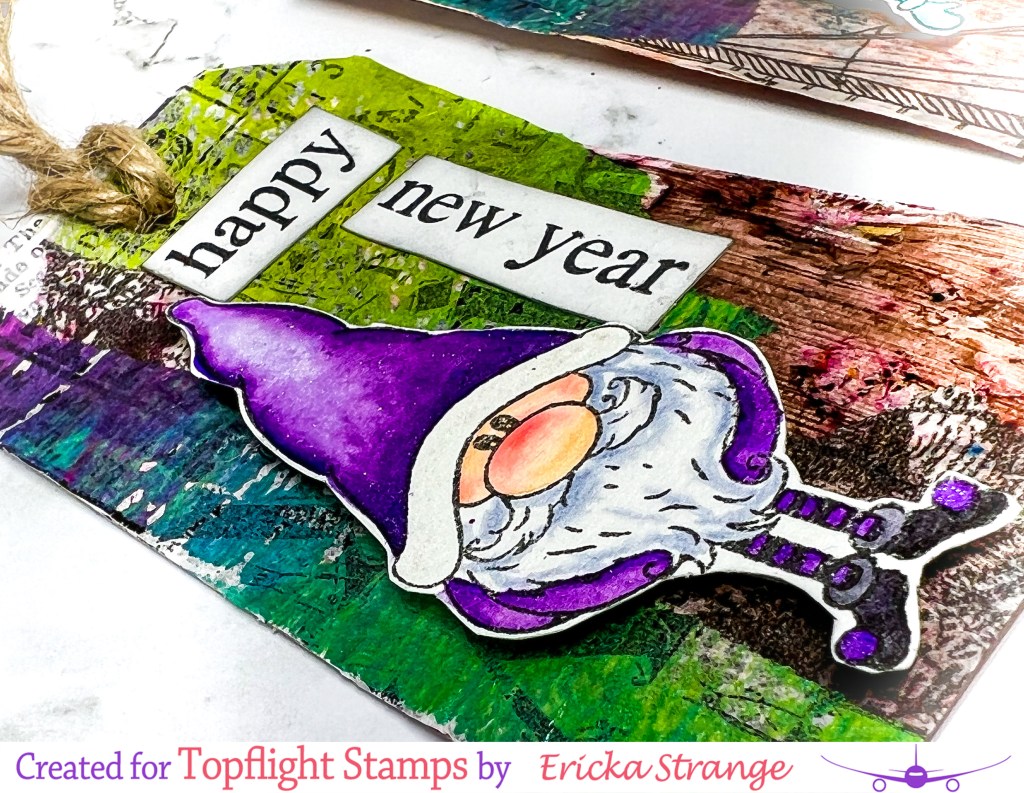 Hello everyone and happy New Years Eve. I’m over on the Topfight Stamps blog with a couple of New Years tags I made for some wine we will be gifting to friends tonight. I love these fun little Gnomies from Paper Rose.
