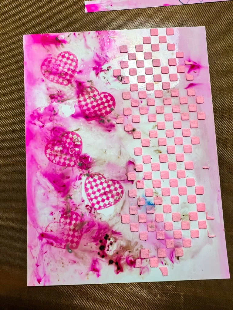 Once my background was dry, I stamped the heart from the Molly Rules set with Picked Rasberry Distress ink.