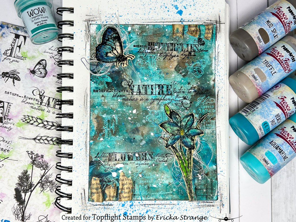 Happy Friday and I hope you are all doing well. I’m over on the Topflight Stamps blog with a mixed media journal page using Katzelkraft stamps. I’ve been playing around with my mixed media journal and having fun with the Katzelkraft Flowers and Nature and the Flowers set.