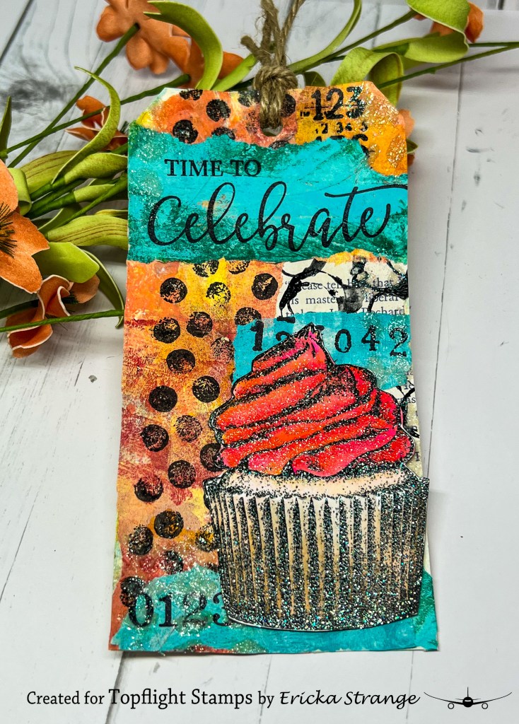 Yay Cupcakes! I really like this tag Ericka. What an amazing creation out of a tiny pile of stamped images. I am new to crafting and I have only created 1 layer tags, but your video encouraged me to step up my game. I love your layout and I had not thought about just ripping paper instead of cutting it. The embossing on the cupcake is the really makes it pop. Thank you so much for sharing your creation. Bye