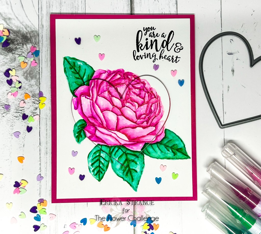 For my card this month I decided to use the Altenew Fresh Cut Roses and color it up with my Zig Clean Color Real Brush markers.