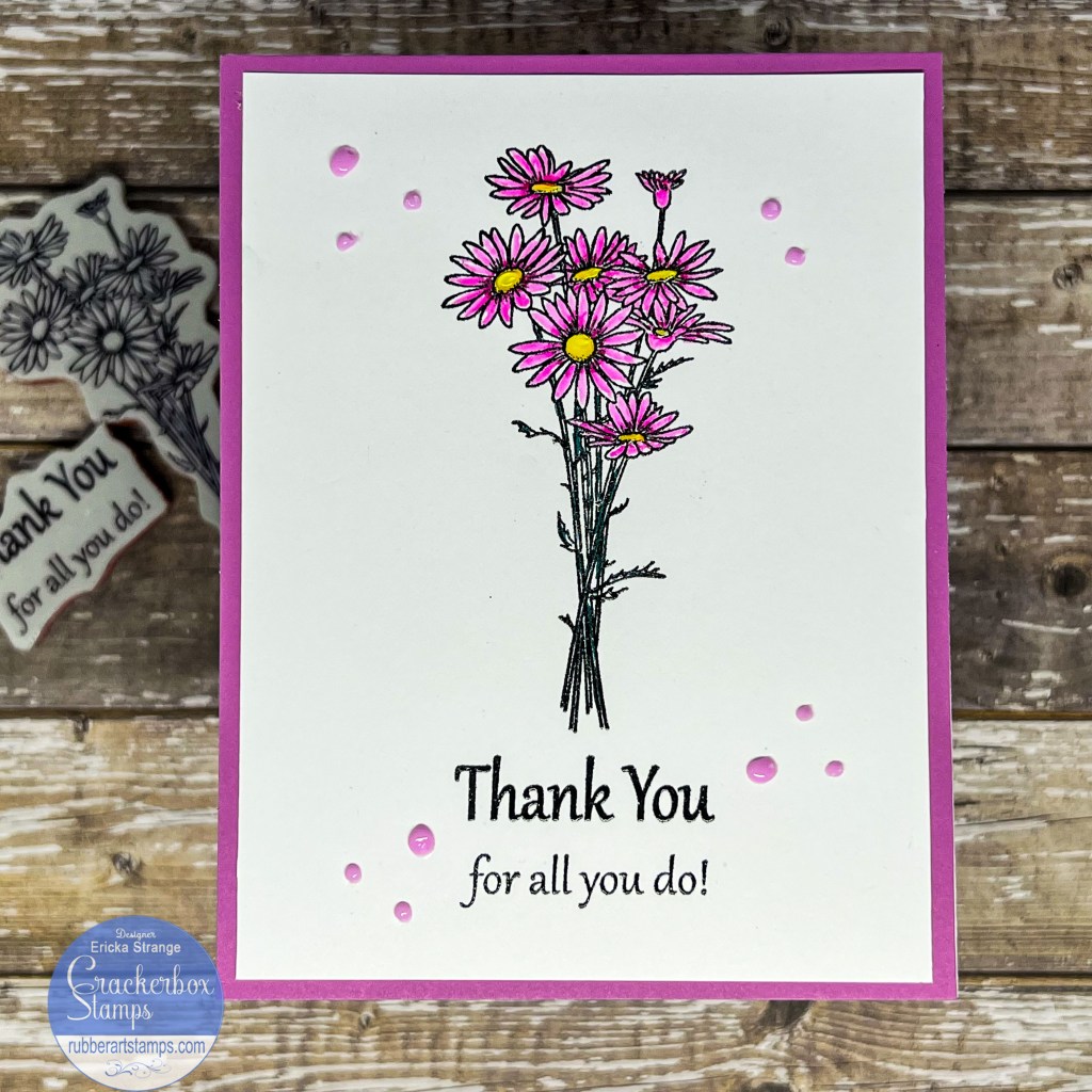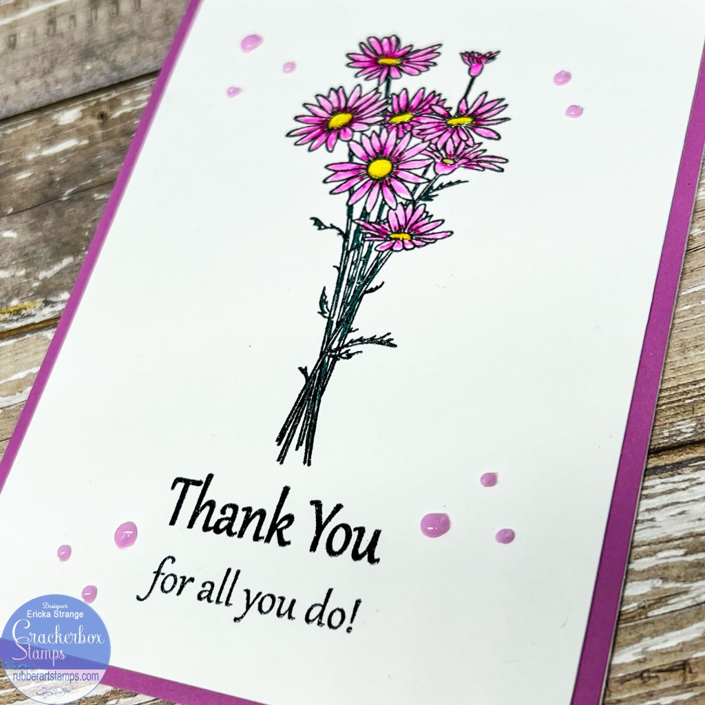 I finished my card by adding some light purple Nuvo drops. And there you have it, a quick and simple thank you card that is easy to make a bunch lol. You can even get your kids involved and have them color up the flowers for their teachers. I hope you have a wonderful rest of the week!