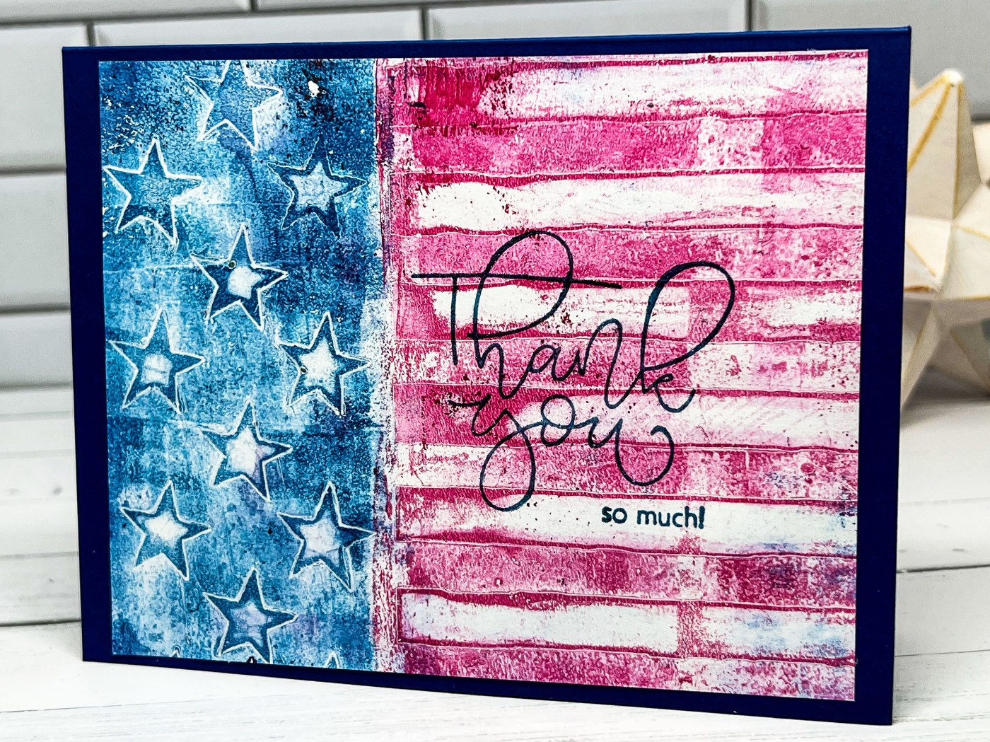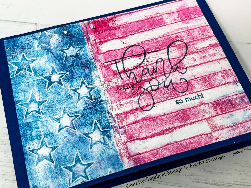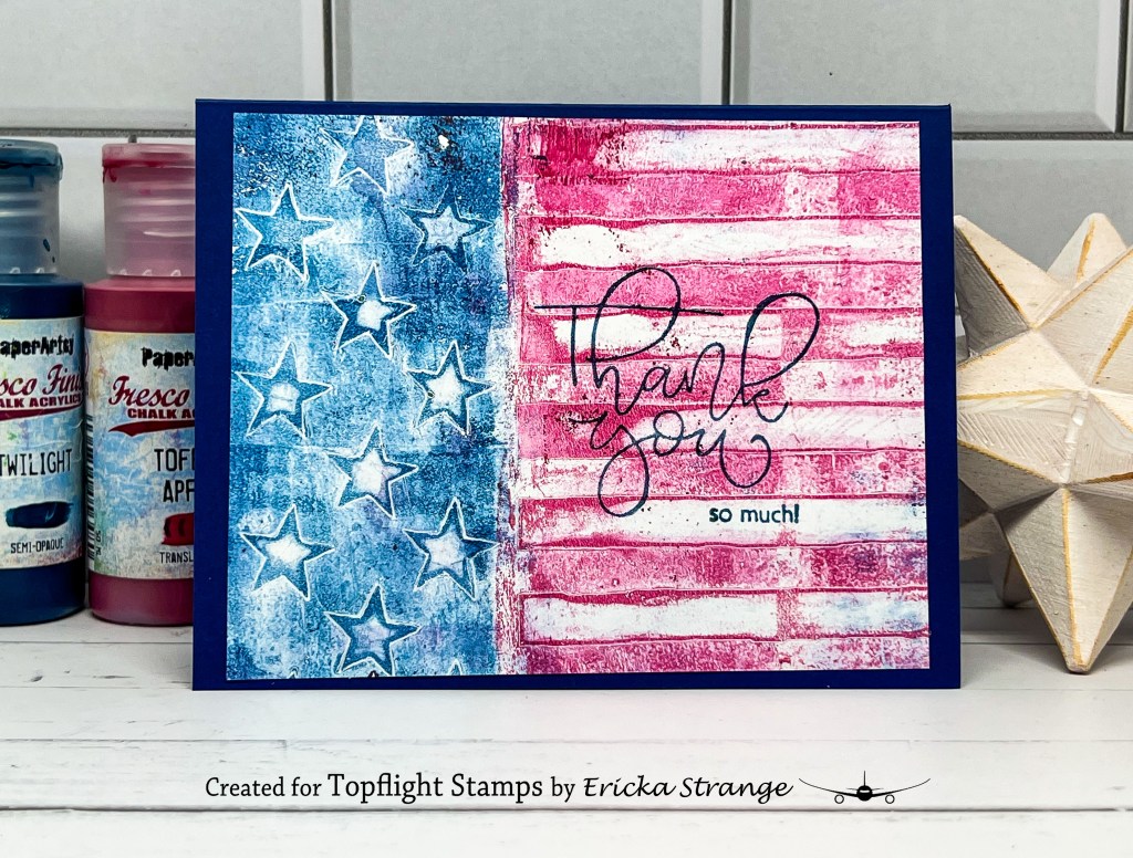 I hope you all had a happy 4th of July! I’m over on the Topflight Stamps blog and I’m celebrating with the Visible Image Stars & Stripes stencil along with my gel press and PaperArtsy Fresco Paint.