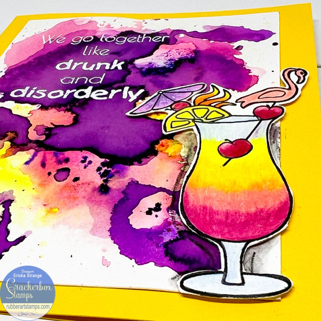 To finish my card, I white heat embossed the Drunk and Disorderly sentiment. Thank you for stopping by and I hope you are keeping cool on this hot summer day!