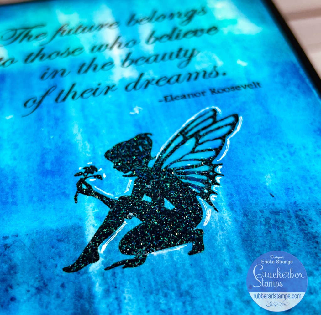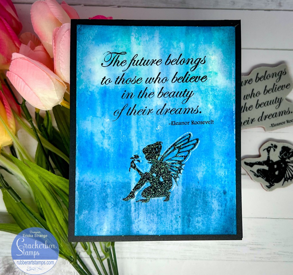 Hello crafty friends! Today I am on the Crackerbox Stamps blog with a blue fairy card I made using distress inks and this pretty Fairy With Flower stamp. I love this pretty fairy and thought it went perfectly with the sentiment The Future Belongs.