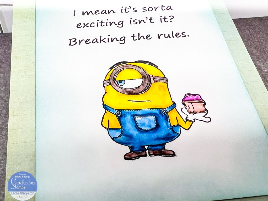 Happy Friday! Today I am on the Crackerbox Stamps blog with a quick and fun card using the Stuart with a Cupcake stamp along with a new sentiment I Mean Its Sorta Exciting.