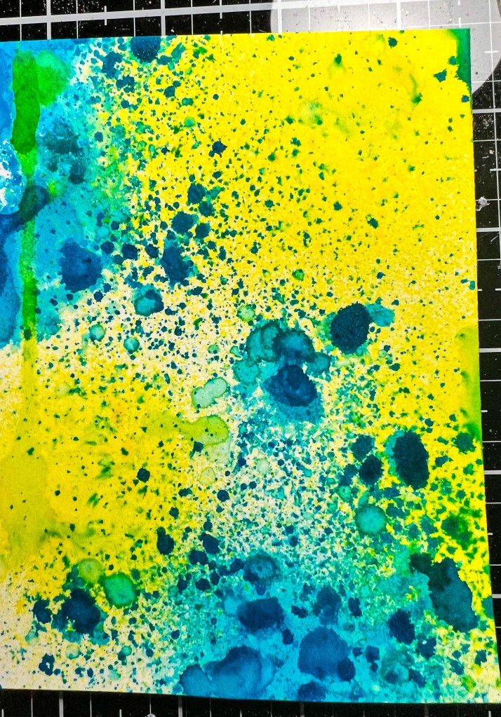 I started by using Distress Spray Stains in Mermaid Lagoon and Squeezed Lemonade on Bristol Smooth paper.